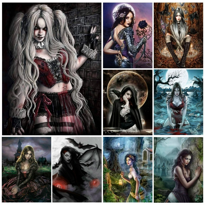 Алмазная живопись на Хэллоуин, женщина-вампир, полноразмерная квадратнаякруглая вышивка, Набор для вышивки крестиком, художественный плакат для украшения вечерние