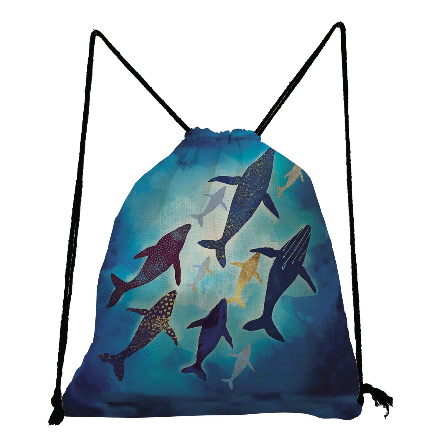 Рюкзак унисекс на шнурке, с принтом в виде морского Кита