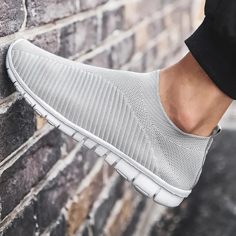 Кроссовки без шнуровки для мужчин и женщин, повседневная Освежающая легкая Уличная обувь, Сетчатые эластичные, для бега, плоская подошва