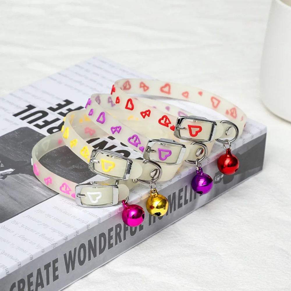 Светящийся ошейник для щенков, собак, кошек, флуоресцентный силиконовый ошейник для кошек с колокольчиками, кольцо для маленьких домашних животных, товары для кошек