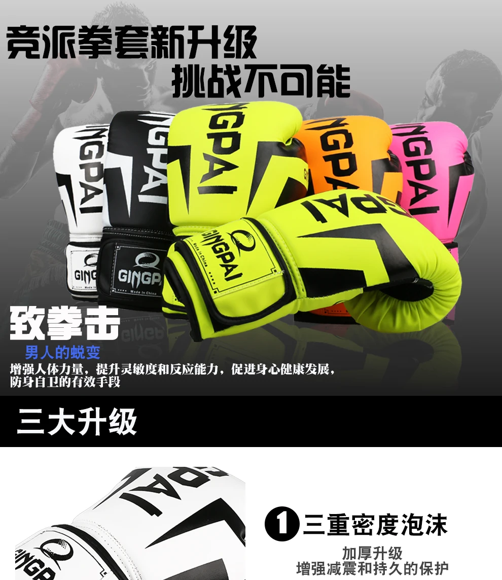 Боксерские перчатки GINGPAI для мужчин и женщин, 6, 8, 10, 12 унций...
