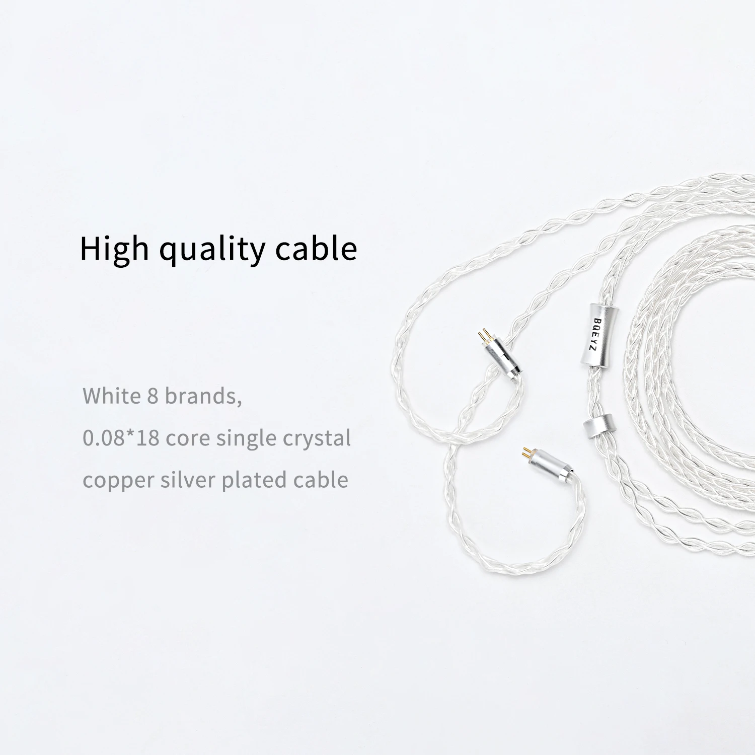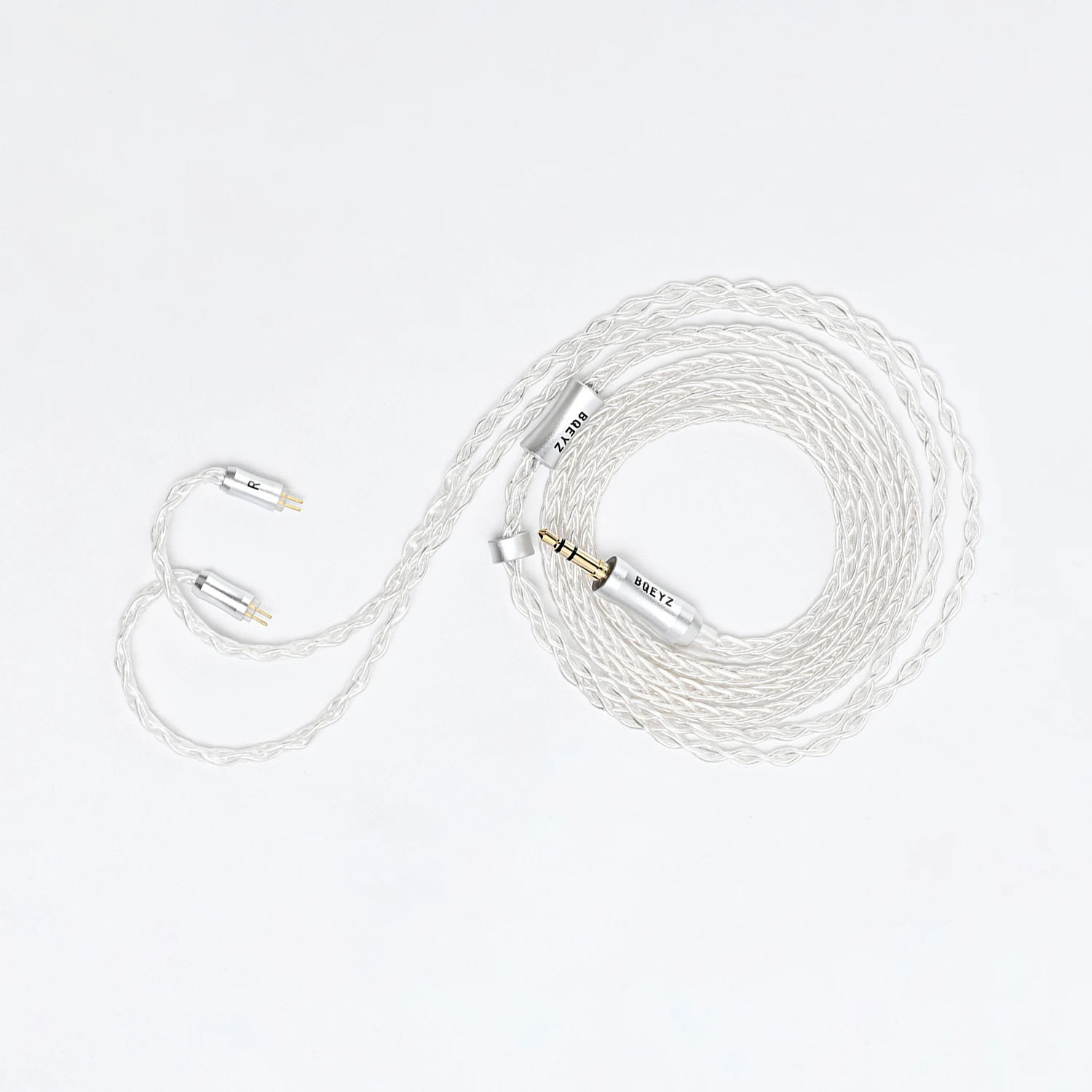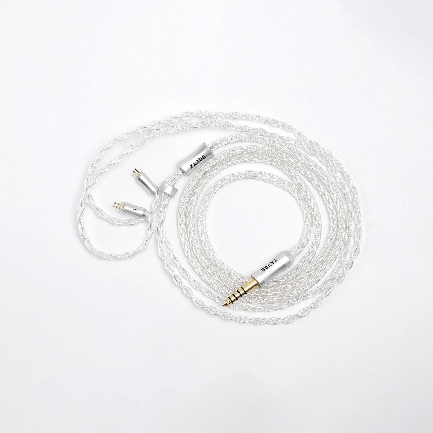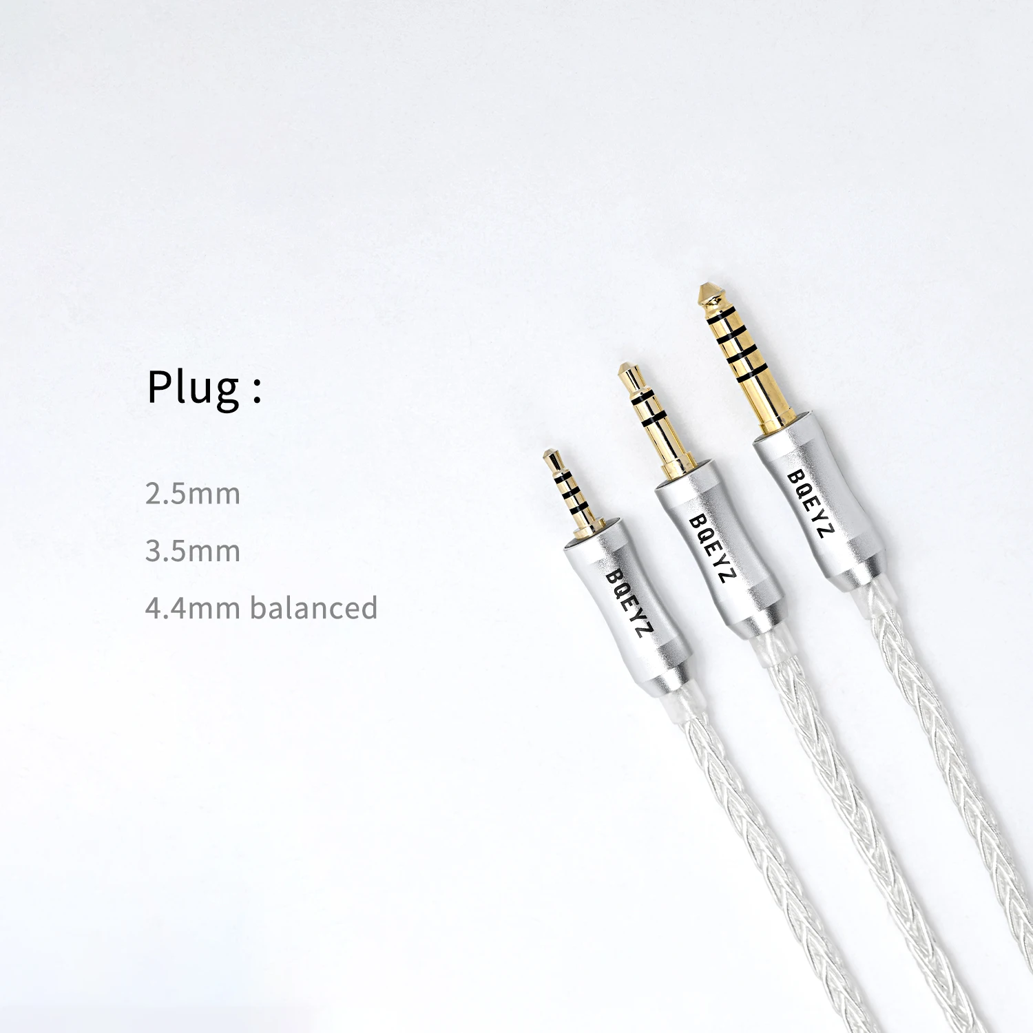 Кабель для наушников BQEYZ с 8-жильным покрытием, серебристый, 0,78 мм, 2-контактный монитор-вкладыш, сбалансированные Hi-Fi Игровые наушники, съемный сменный провод