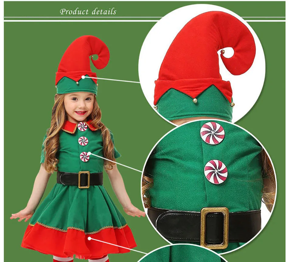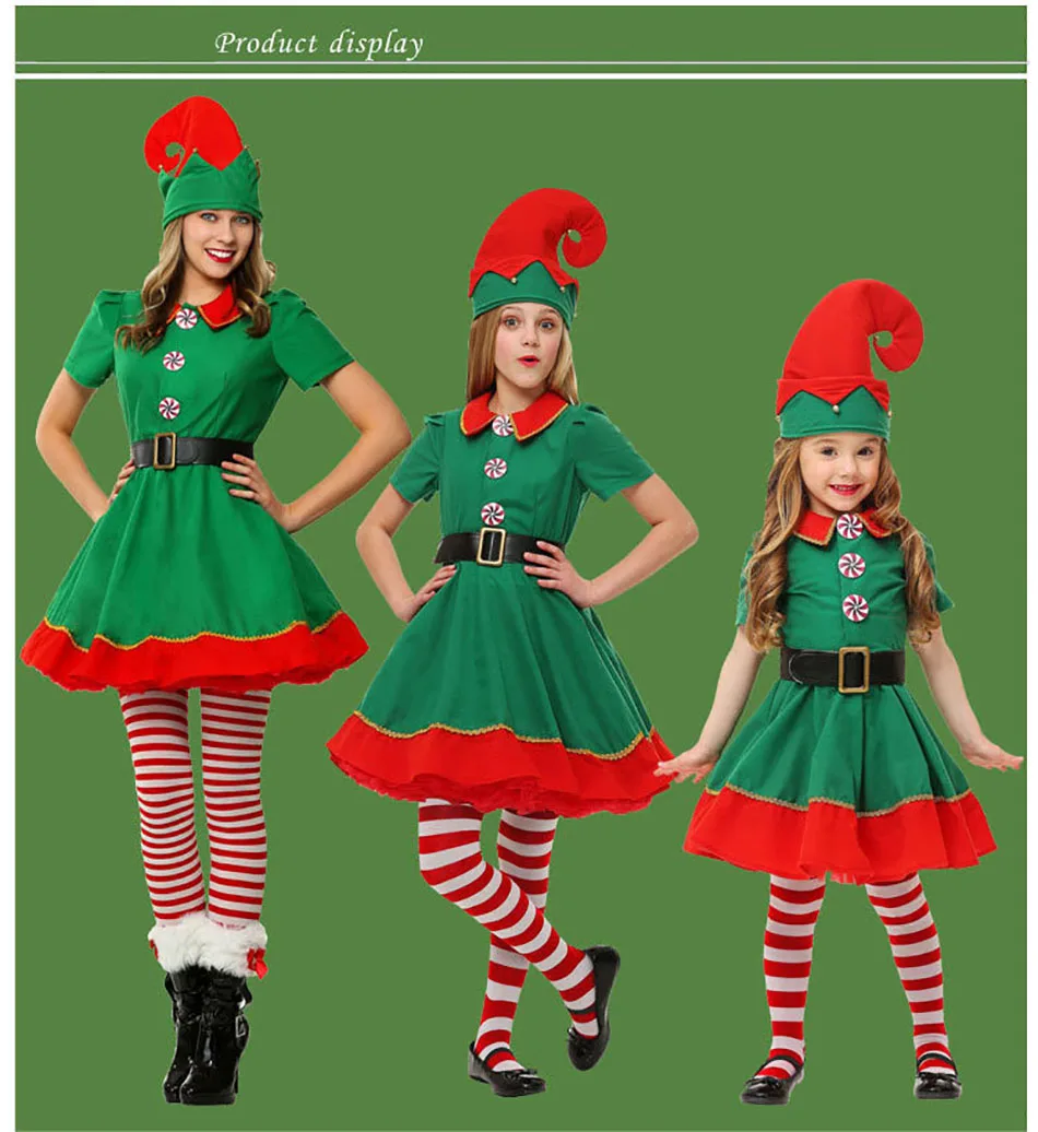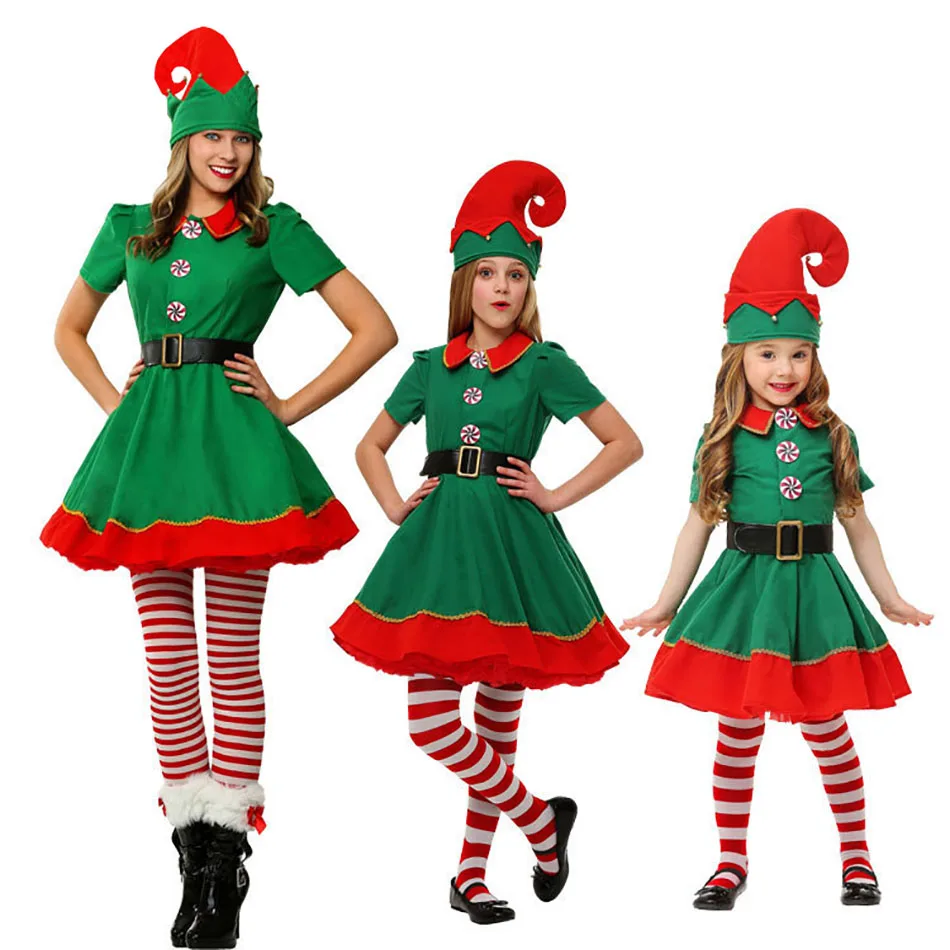 Мальчики Девочки Дети Хэллоуин Рождество костюм дети эльф Санта Клаус Одежда для родителей детей наборы для взрослых красный зеленый фотография ткань