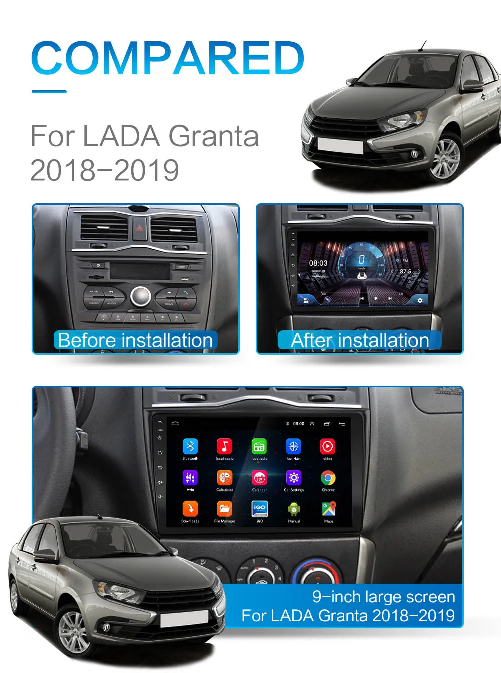 Подключение к смартфону, зеркальное соединение, двойное управлениеПолный емкостный сенсорный экран управленияBluetooth 4,4 встроенный, hands-free, телефонная книга● A2DP воспроизводит музыку с мобильный телефон на радио9 "1024*600 HD цифровой дисплей● Система Android 10,0● Встроенная флэш-память DDR3 8G 128G● Встроенный WiFi 4GВход камеры заднего видаИнтегрированный усилитель на полевых МОП-транзисторах 4x50 Вт.FM интегрирует 18 предварительно настроенных сайтов● Частотный диапазон FM: 87,5-108 МГцДва задних usb-входа● Управление рулевым колесомМатериал: металлический пластикМесто установки: консольная машинаПредварительно установленная карта: sygic Navitel (опционально)Тип экрана: цифровой сенсорный экранРазмер экрана: IPS HD 2.5D 9 дюймовРазрешение экрана: 1024x600Язык OSD: английский, русский, немецкий, французский, итальянский, испанский, арабский, иврит, японский, чешский, португальский, румынский, турецкий, корейский и т. д. 60 языков. И многое другоеВход AC/DC 14,4 V.