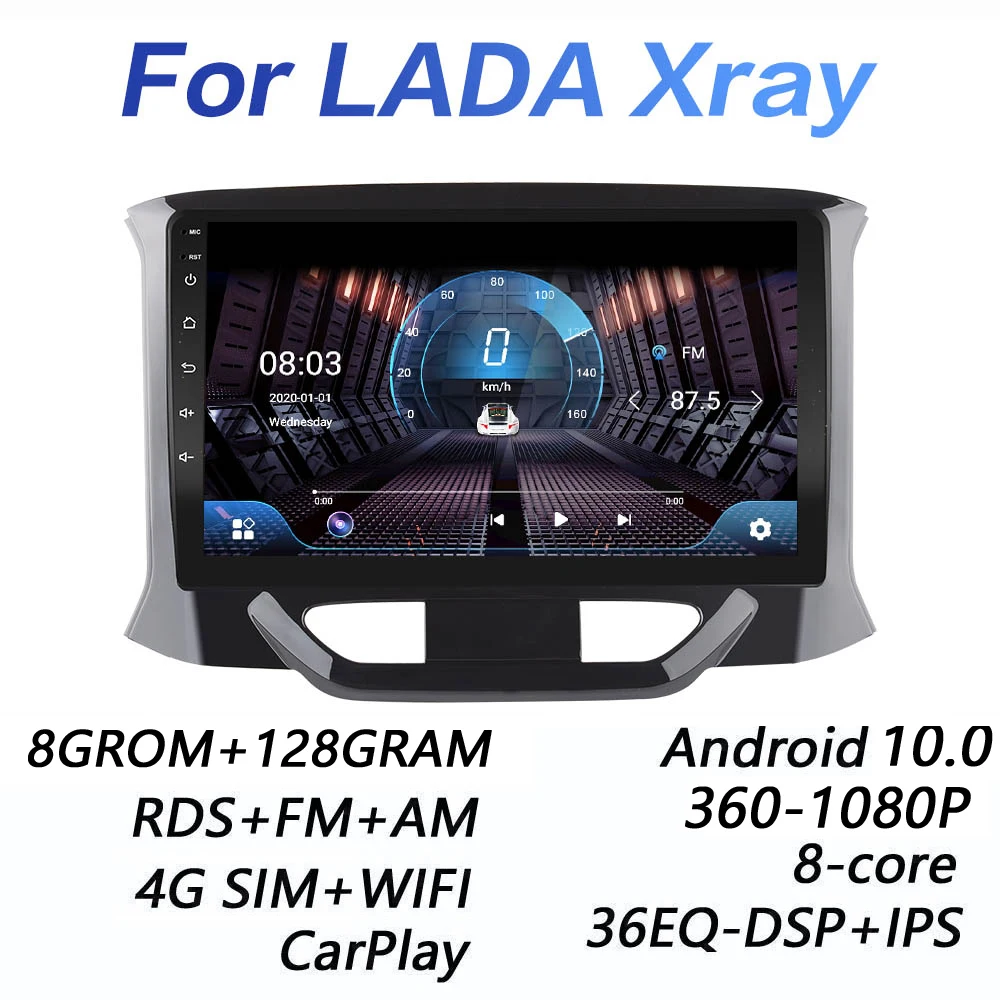 Автомагнитола 2 din, 8 ГБ + 128 Гб, DSP, Android 10,0, 4G, мультимедийный видеоплеер для LADA X ray Xray 2015 - 2019 carplay, Wi-Fi, BT