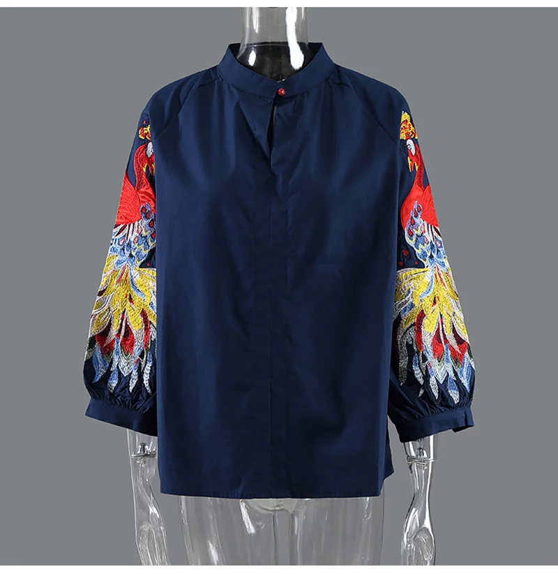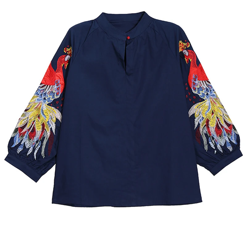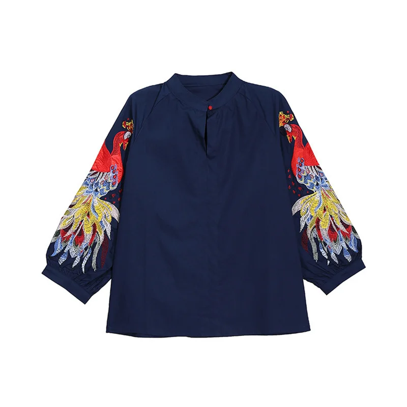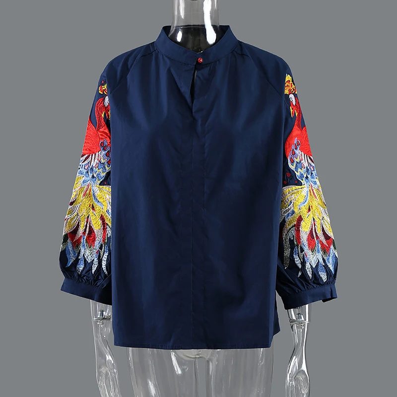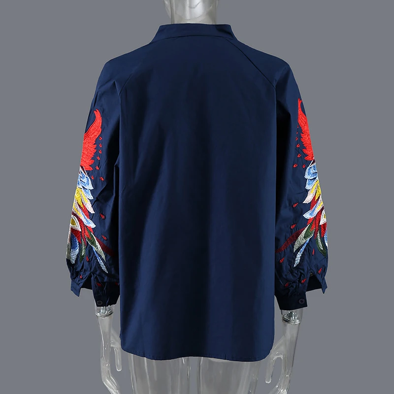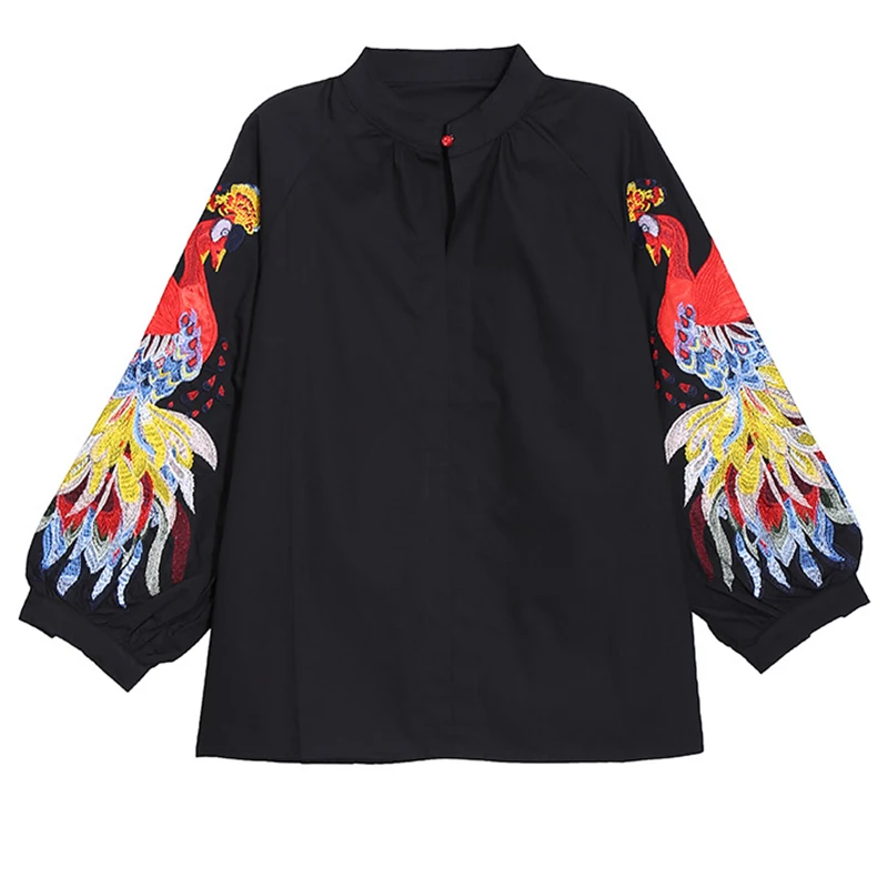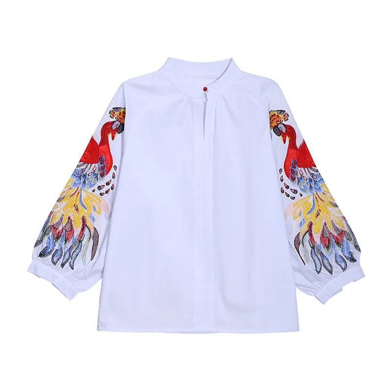 EAM Женская белая Элегантная блузка с вышивкой, новая свободная рубашка с воротником-стойкой и длинным рукавом, модная весенне-летняя 2022 1DE1698