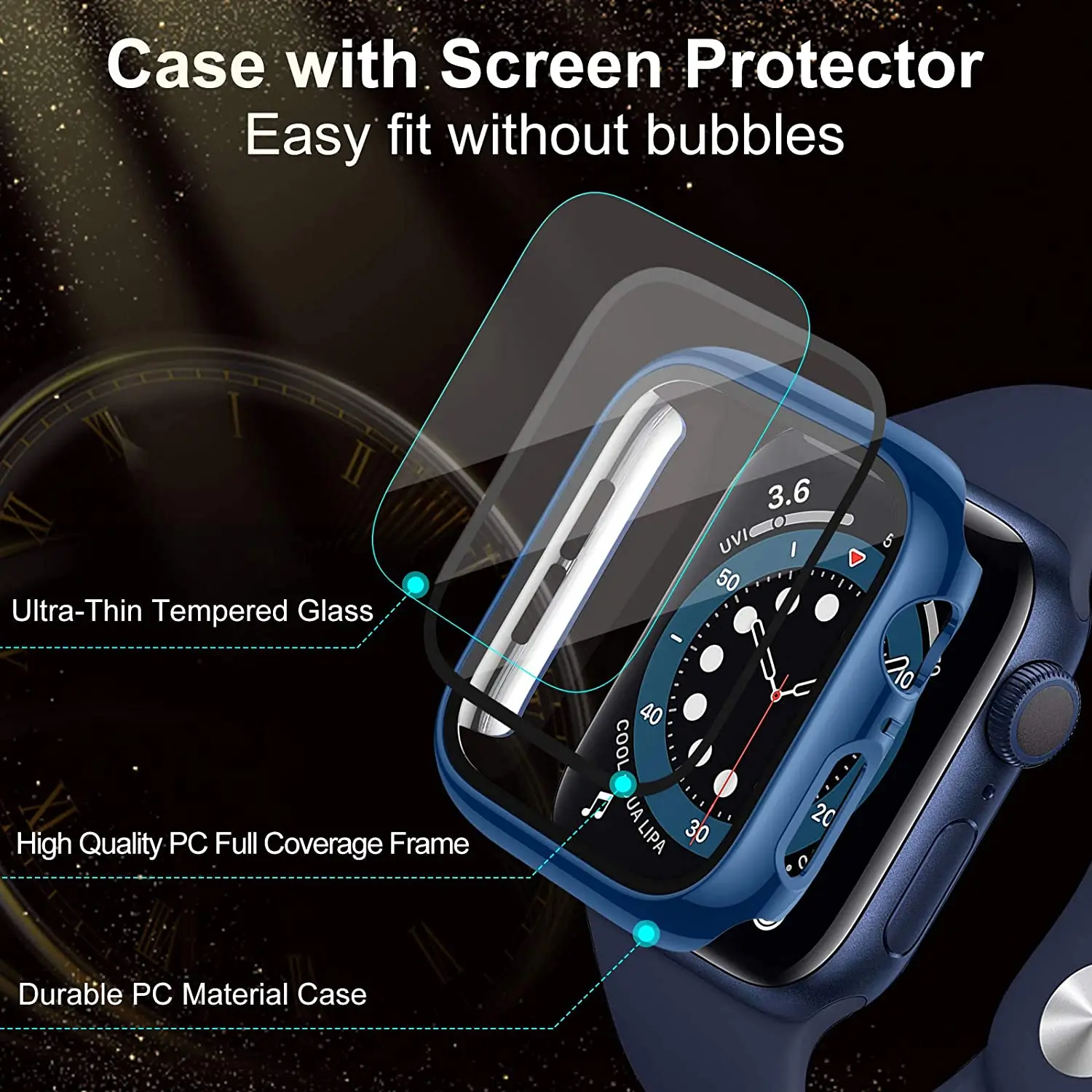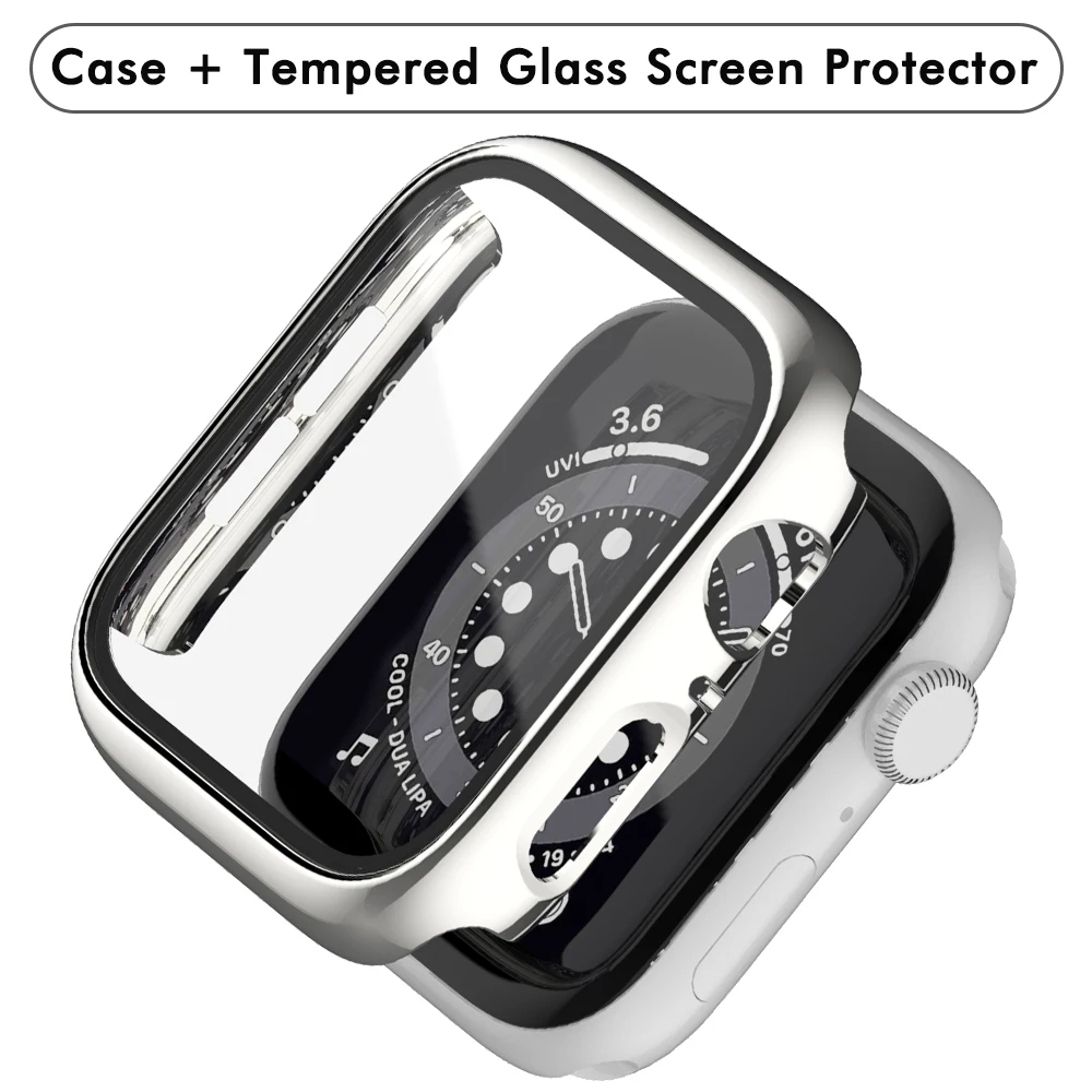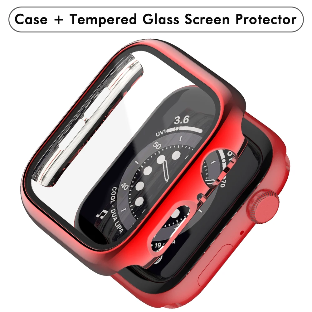 Стекло и чехол для Apple Watch 45 мм 41 мм 44 мм 40 мм 42 мм 38 мм, полное покрытие, Защита экрана для iWatch SE 7 6 5 4 3 2 1, аксессуары