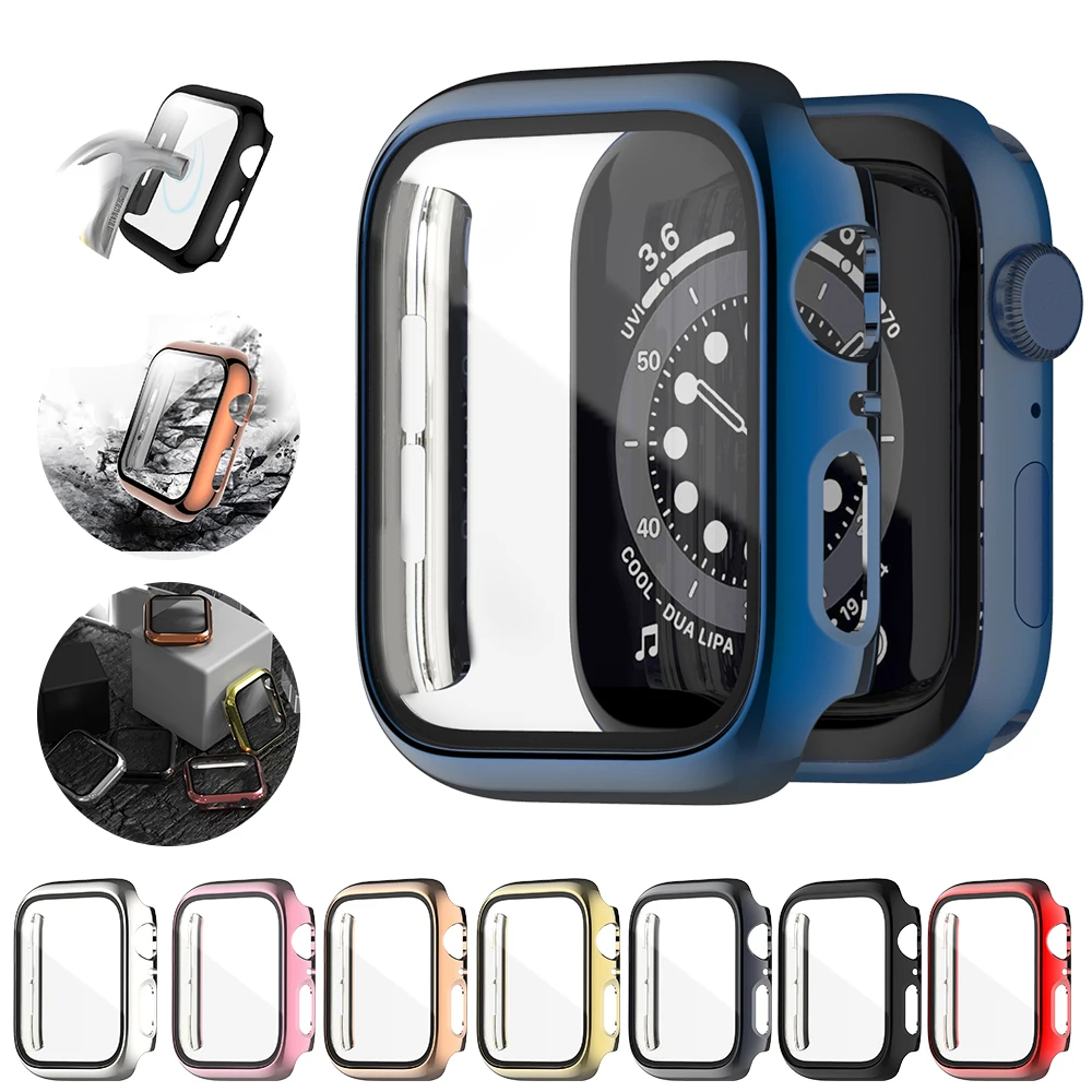 Стекло + чехол для Apple Watch 45 мм 41 мм 44 мм 40 мм 42 мм 38 мм полное покрытие Защита экрана для iWatch SE 7 6 5 4 3 2 1 Аксессуары