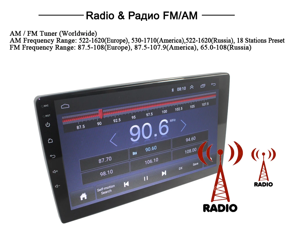 Основные характеристики WIFI 1G + 16G 4G 2G + 32G 4G 4G + 64G ОС Android 10,0 Android 10,0 Android 10,0 Процессор Четырехъядерный процессор A7 Четырехъядерный процессор A53 Четырехъядерный процессор A53 Частота 1,3 ГГц 1,5 ГГц 1,5 ГГц Оборудование 4 ядра 1G RAM 16G ROM 4 ядра 2G RAM 32G ROM 8 ядер 4G RAM 64G ROM Радио NXP6851 NXP6851 NXP6851 Усилитель IC TDA7388 45 Вт X 4 TDA7388 45 Вт X 4 ST7850 50 Вт X 4 Интернет Wifi, горячая точка Wifi,4G интернет Wifi,4G интернет Дисплей Экран 1024*600 HD 2,5 D Экран 1024*600 HD 2,5 D Экран 1024*600 HD 2,5 DОсновные функции: