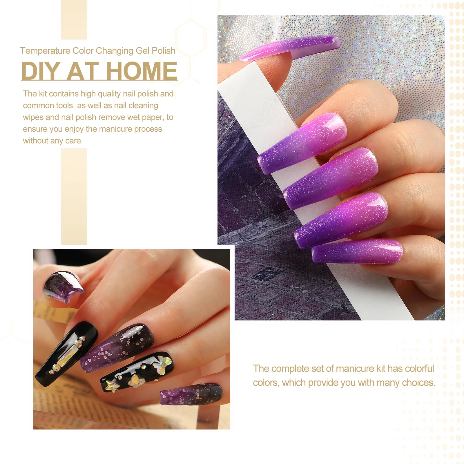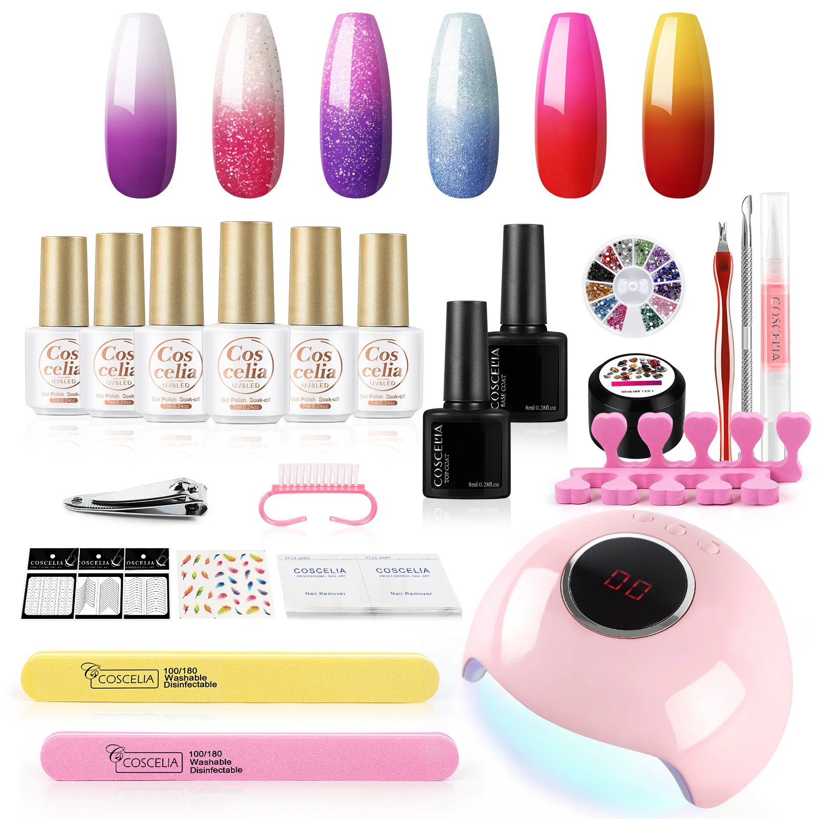 Комплект гель-лаков для ногтей с УФ светильник, меняющим цвет при температуре, набор гель-лаков, базовое и верхнее покрытие, украшение для ногтей, набор для маникюра
