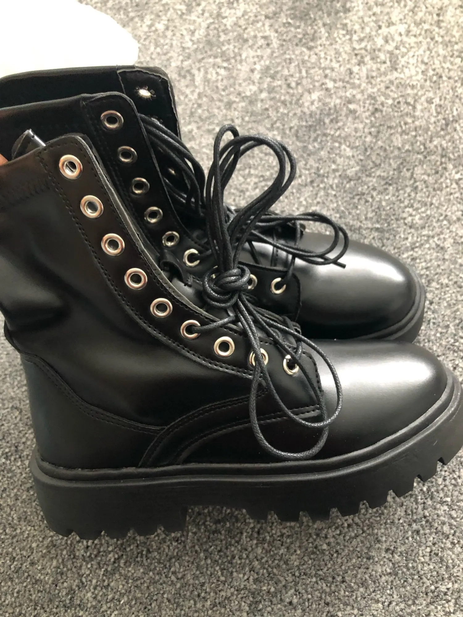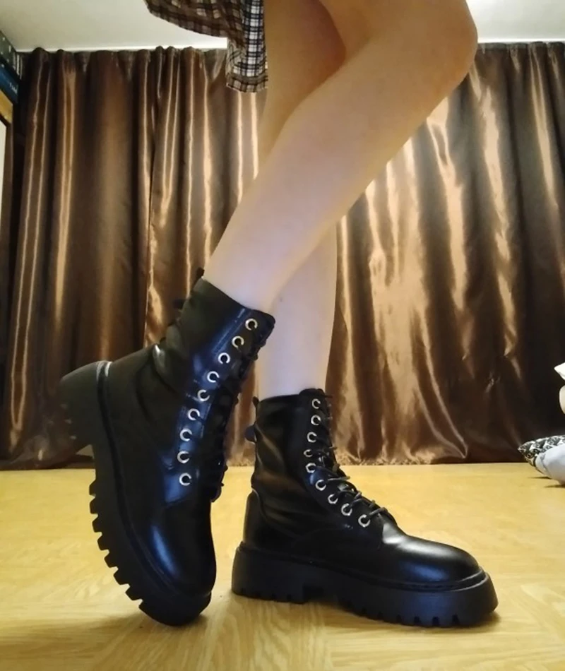 Lucyever модные черные мотоциклетные ботинки на шнуровке, женские осенние короткие ботинки на среднем каблуке с круглым носком, женские удобные нескользящие ботинки на платформе