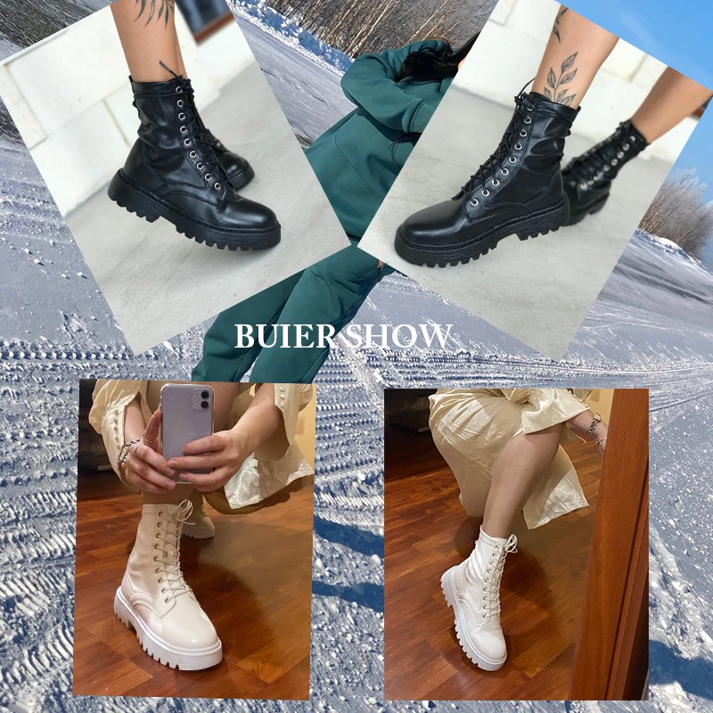 Женские ботинки из спилка на платформе, черные или белые мотоциклет...