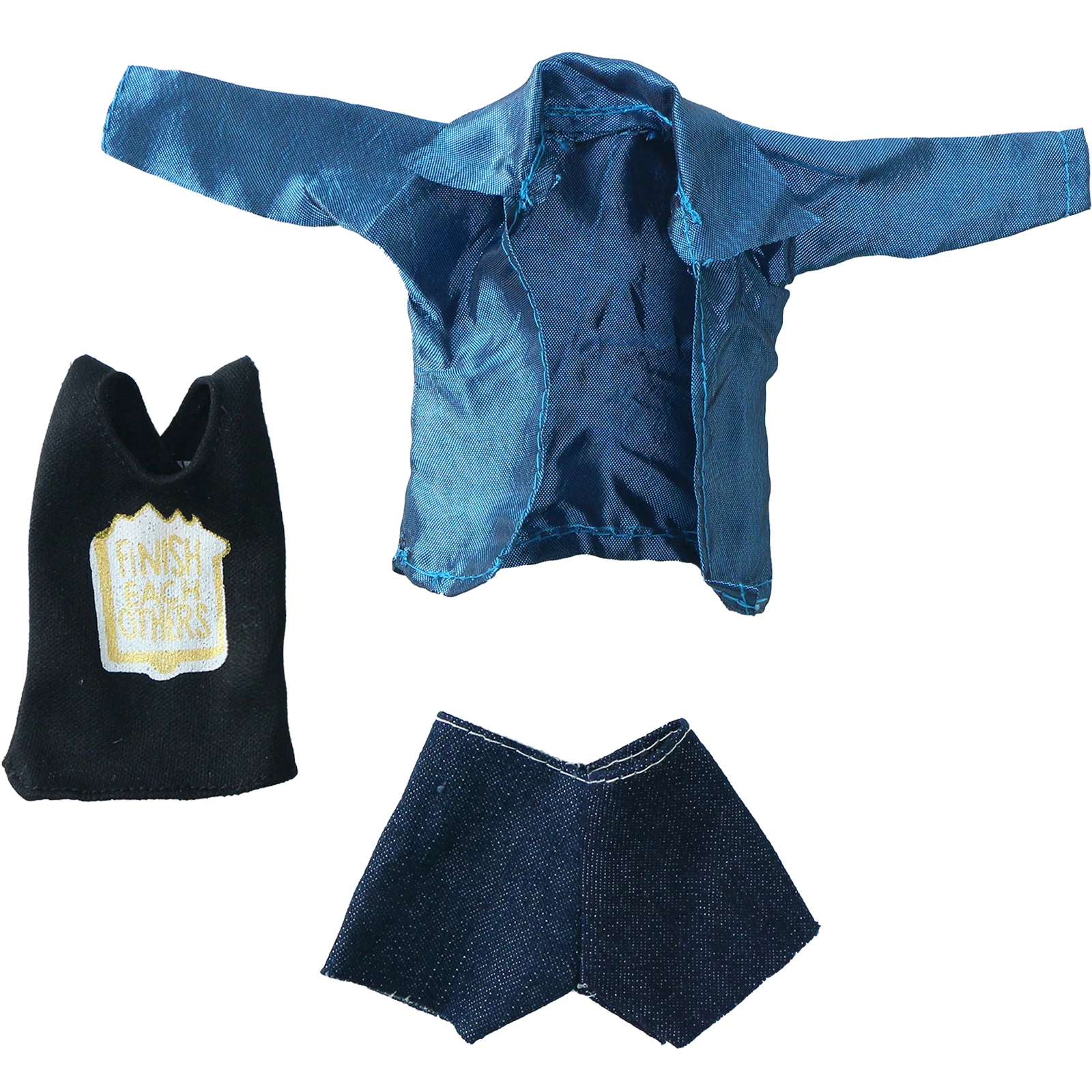 3 шт.компл., блестящее пальто для куклы Барби, черный топ и короткие штаны