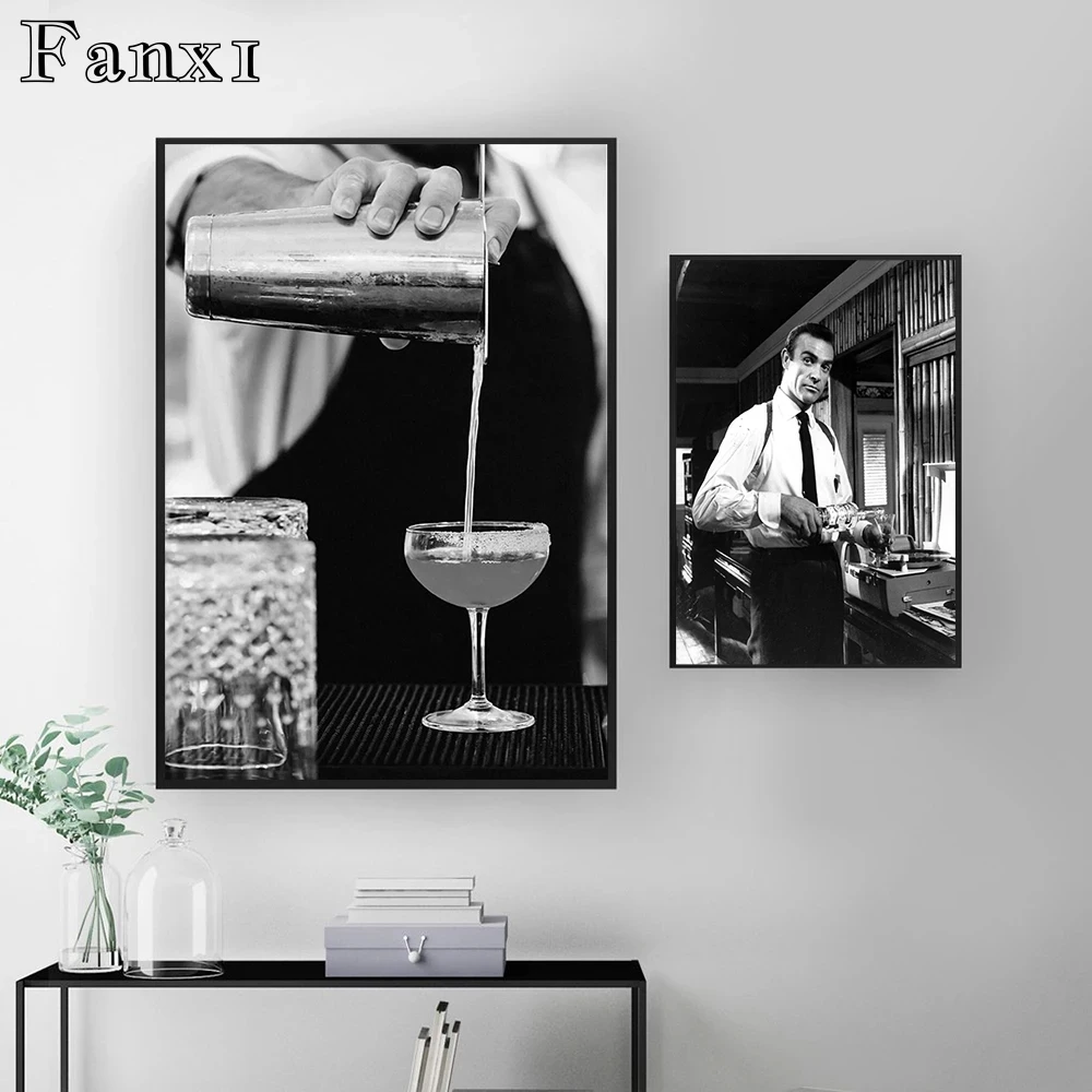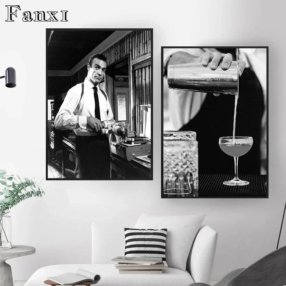 Классическая винтажная Картина на холсте Роджер Мур Джеймс Бонд 007, Настенная картина черного и белого цвета для гостиной, домашний декор