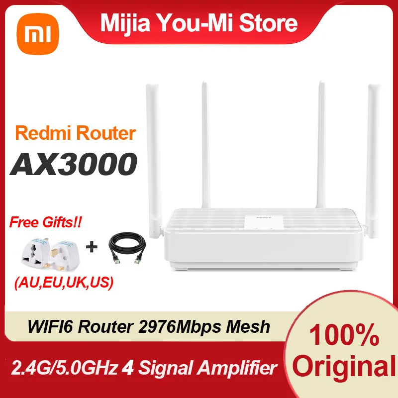 2021 Xiaomi Redmi AX3000 WIFI6 маршрутизатор 2976 Мбитс сетчатый двухдиапазонный телефон 256 Мб 160 МГц OFDMA эффективная передача 4 усилителя сигнала