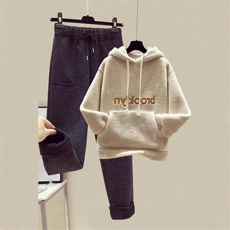 Новый размера плюс, женские толстовки с капюшоном и штаны комплект ...