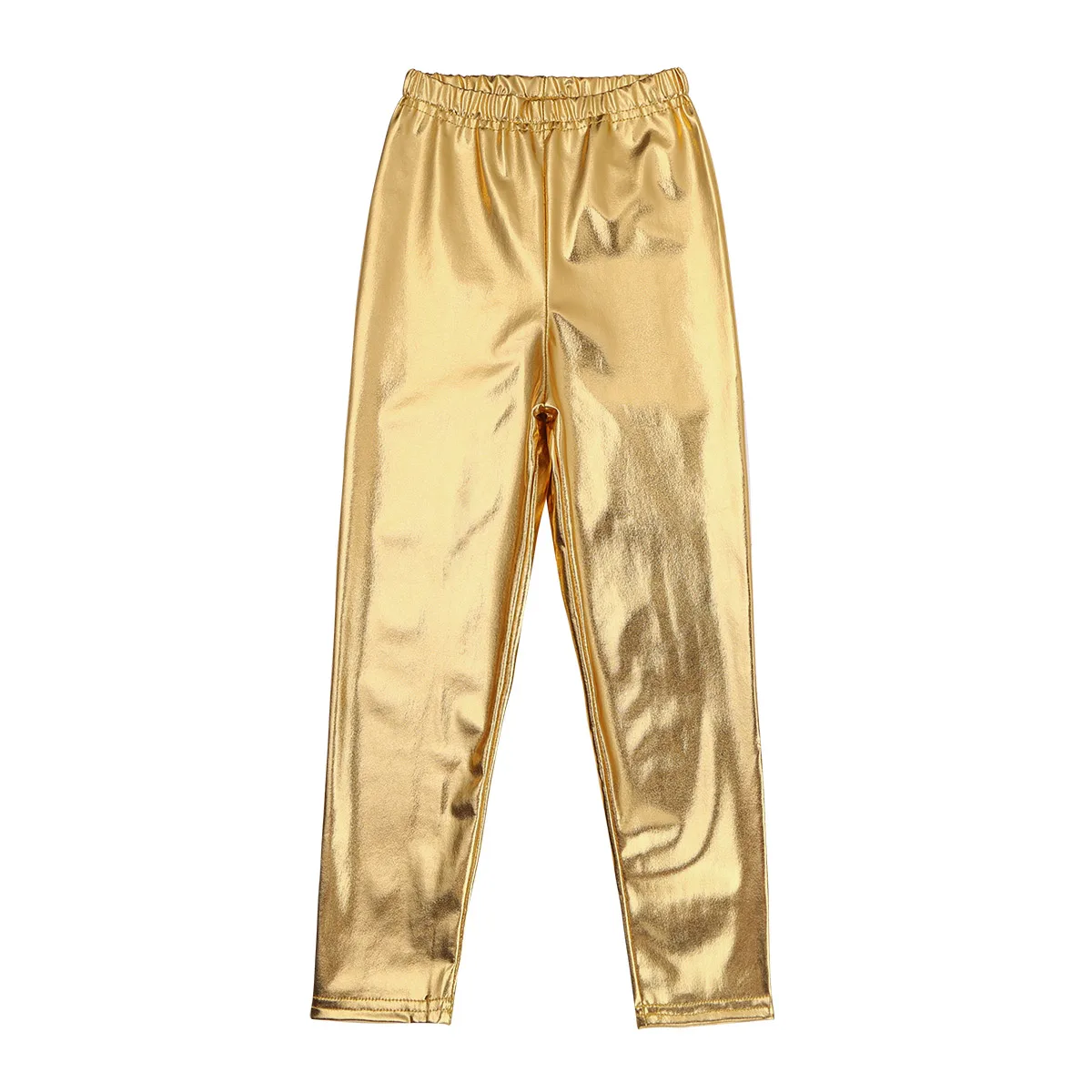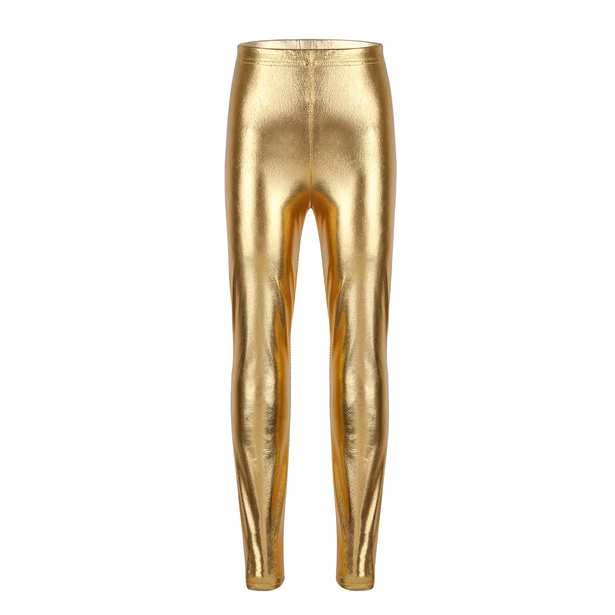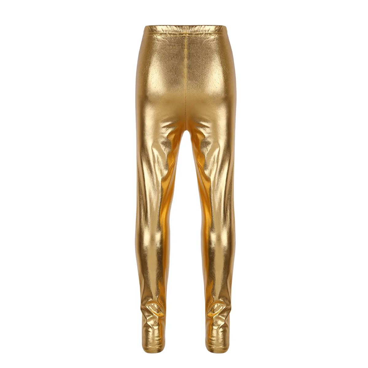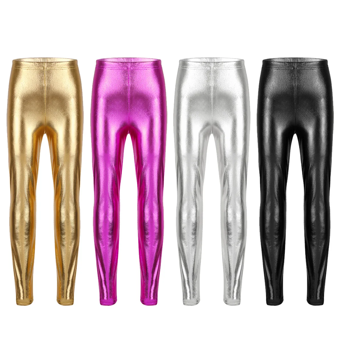 Детские леггинсы для девочек, брюки, блестящие модные облегающие брюки с металлическим блеском для танцев, костюмы для выступлений, детские танцевальные брюки-карандаш