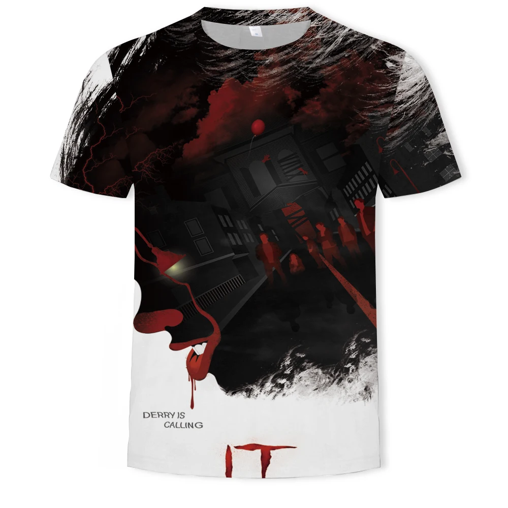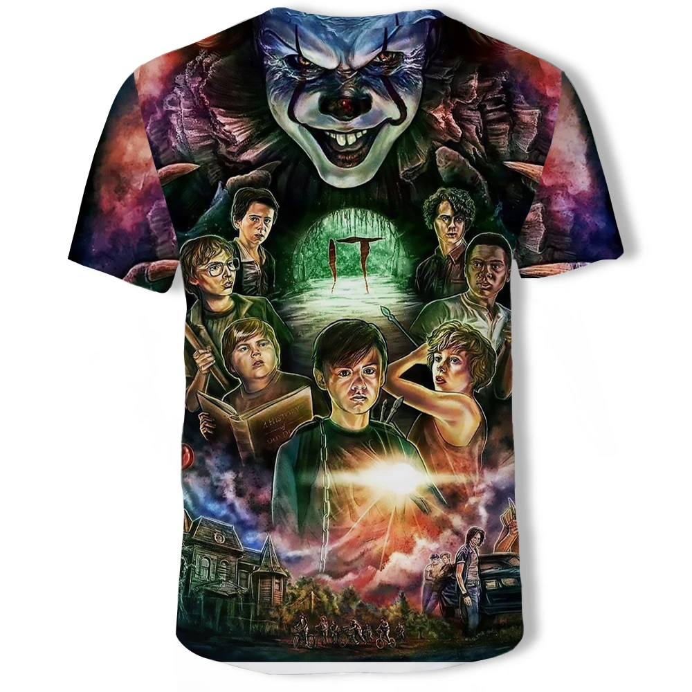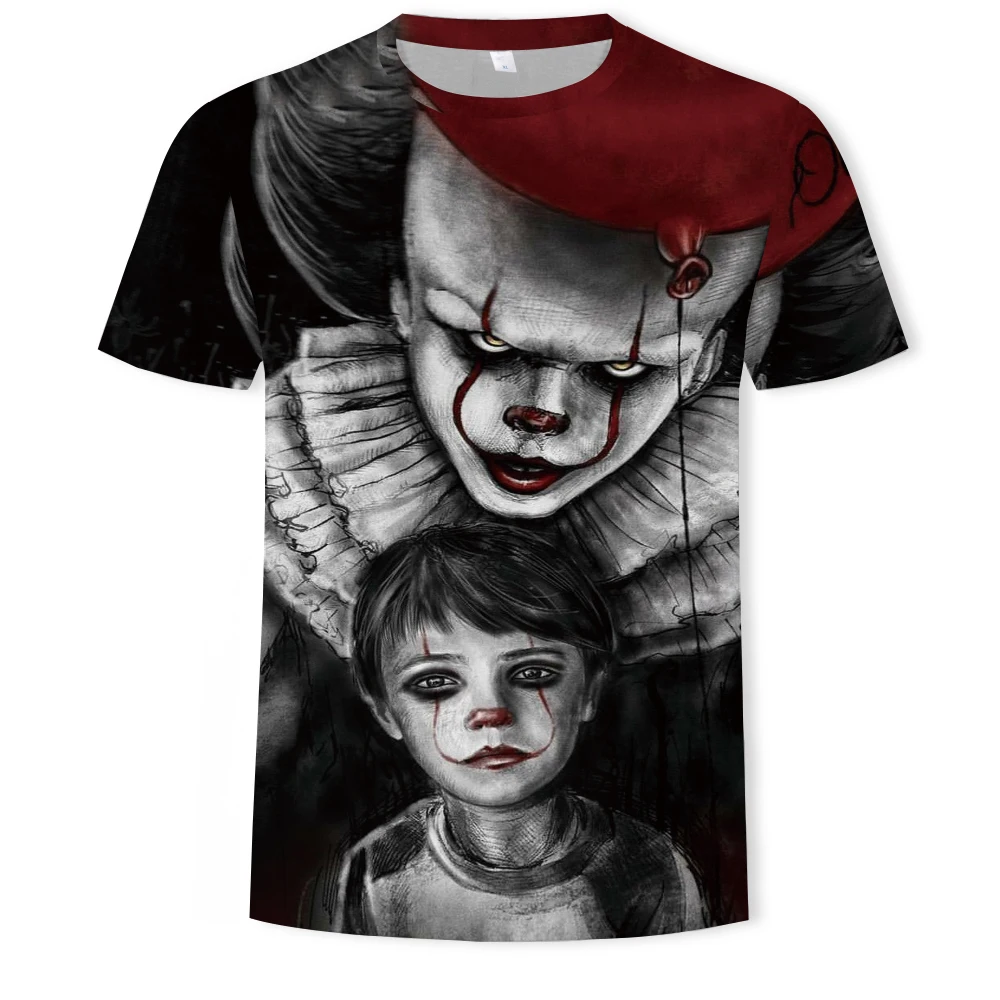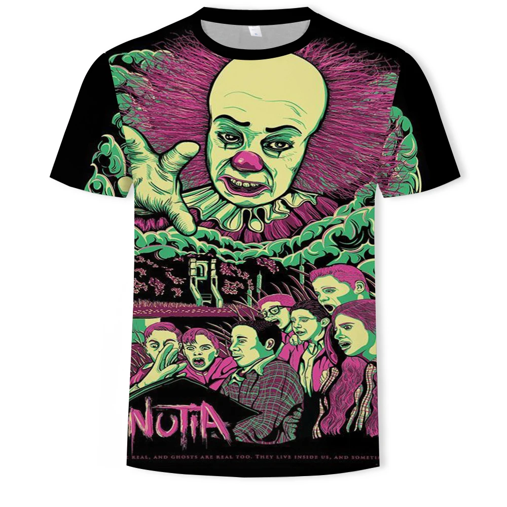 Футболка в стиле Харадзюку для мальчиков и девочек, с 3D принтом из фильма клоуна, уличная одежда в стиле хип-хоп, большие размеры