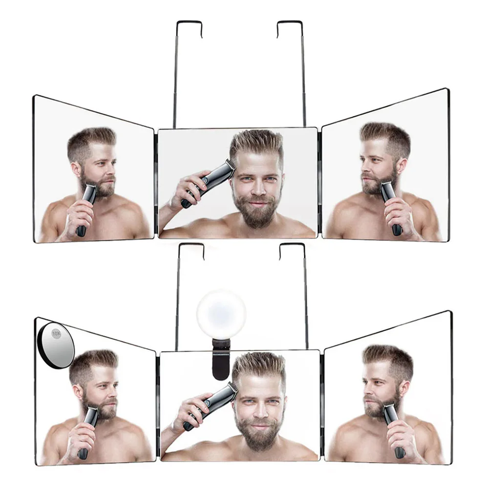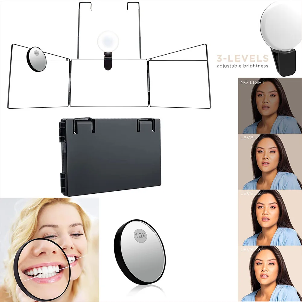 Зеркало для самостоятельной стрижки волос, тройное складывание на прочная аккумуляторная градусов, со светодиодсветильник кой, 360