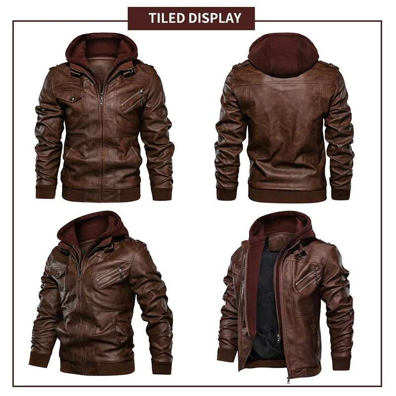 Новинка, мужская верхняя одежда, Бомбер, винтажная Осенняя черная повседневная куртка из искусственной кожи, приталенная мотоциклетная байкерская куртка, съемный капюшон