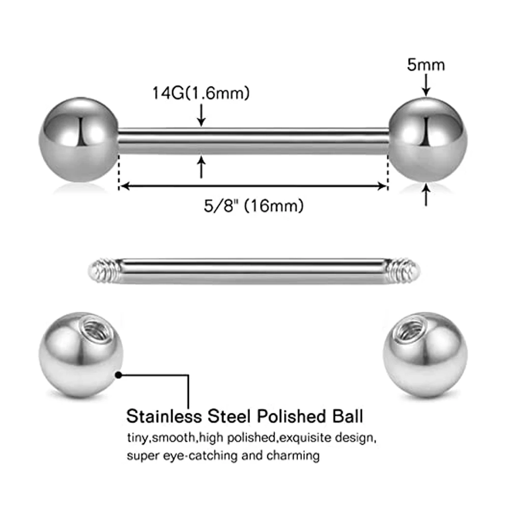 Кольца для пирсинга сосков, нержавеющая сталь, 16 мм, для сосков и языка дюйма, 1 пара