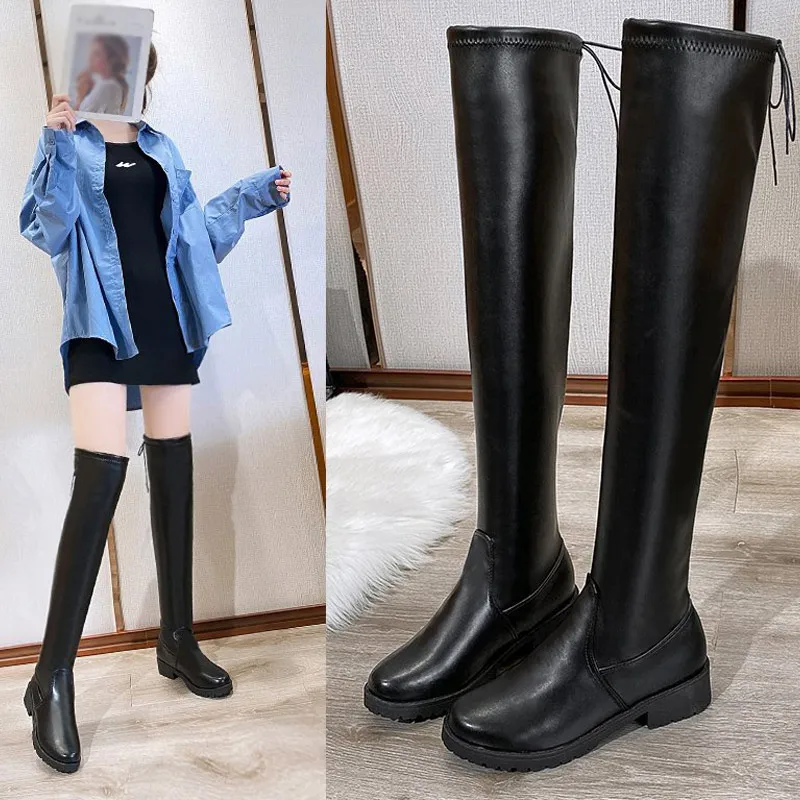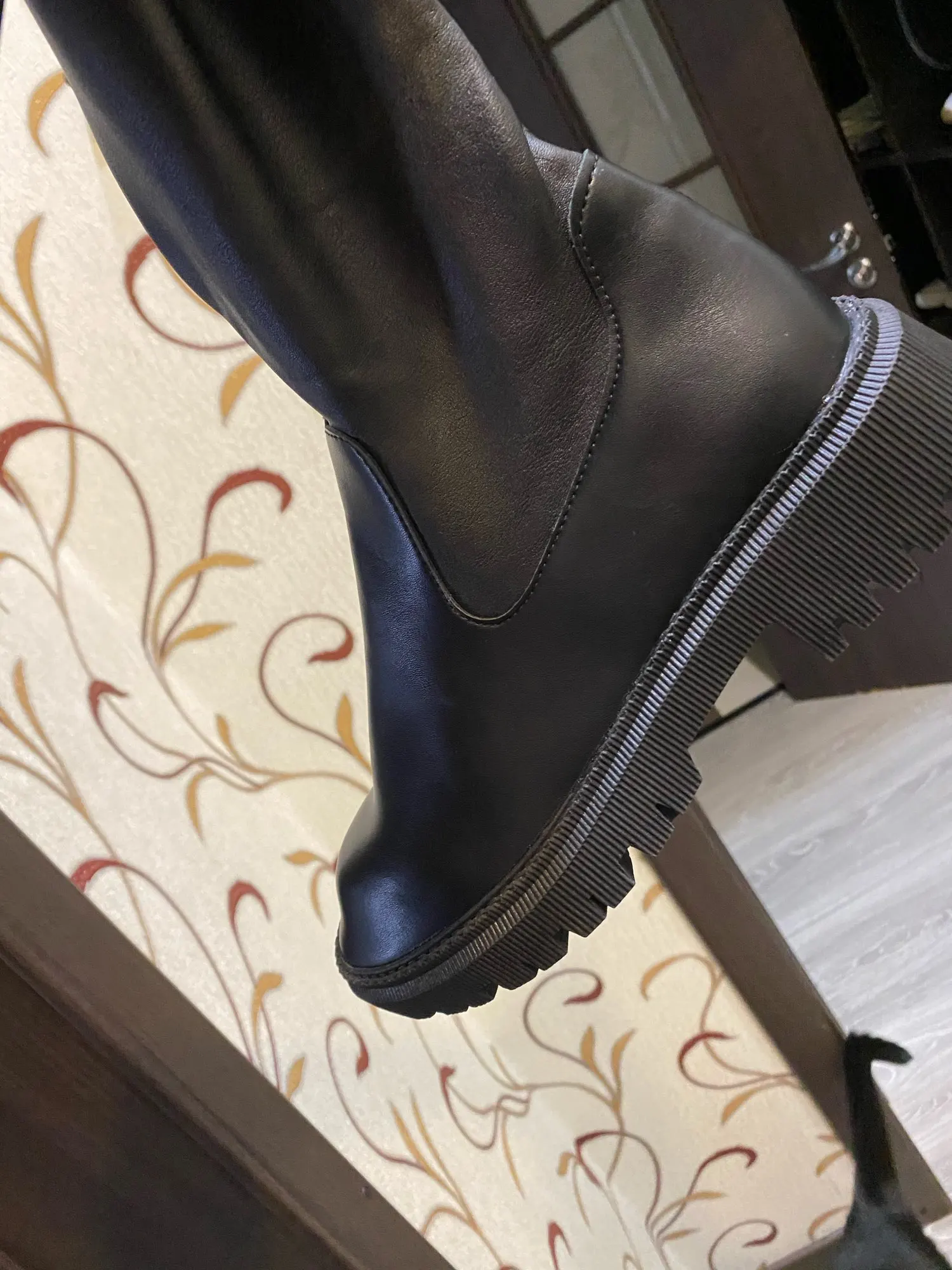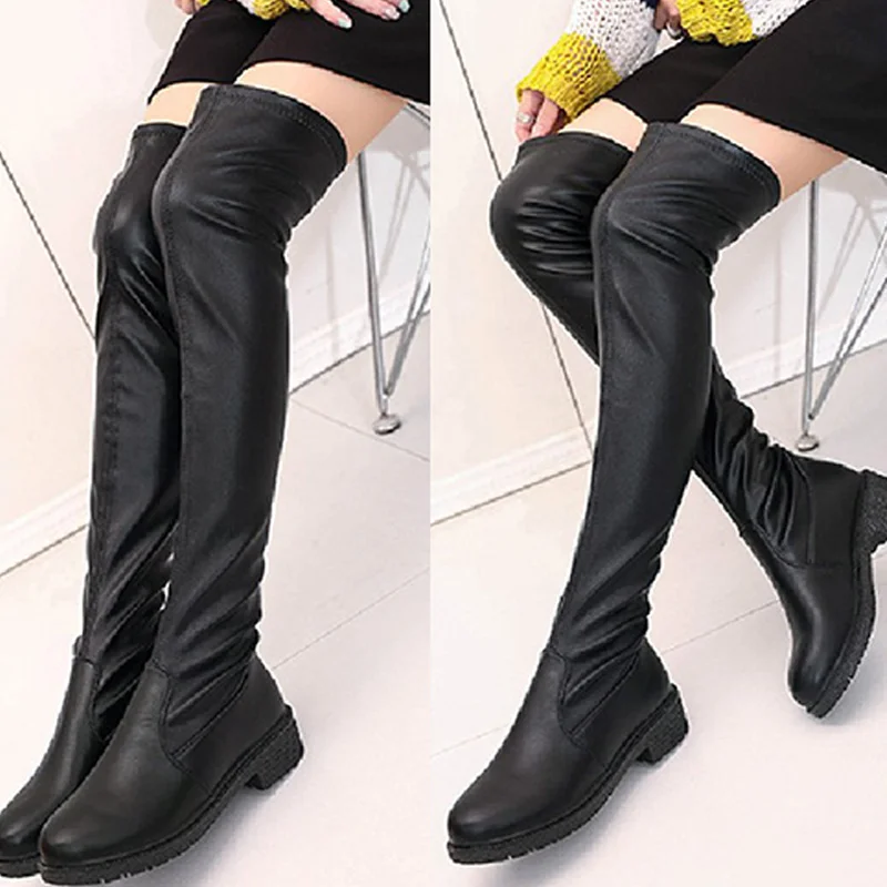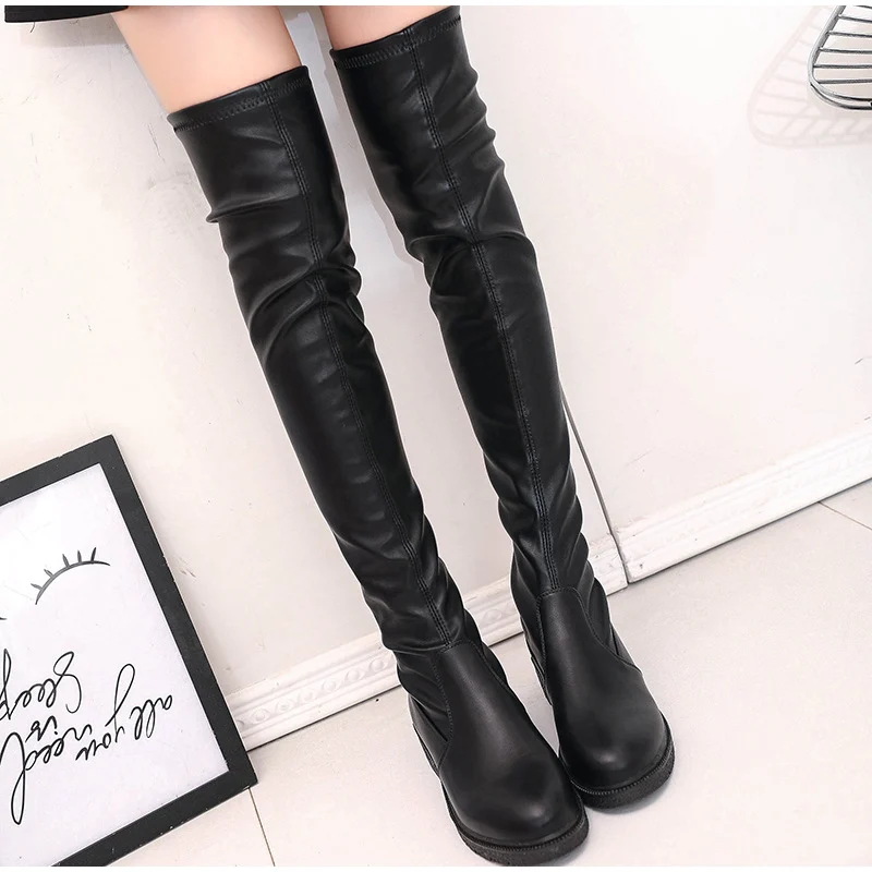 Женские сапоги выше колена, короткие плюшевые сапоги, женская обувь из искусственной кожи на среднем каблуке, нескользящая зимняя обувь, женские теплые длинные сапоги, Новинка