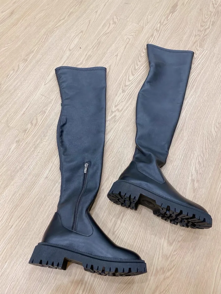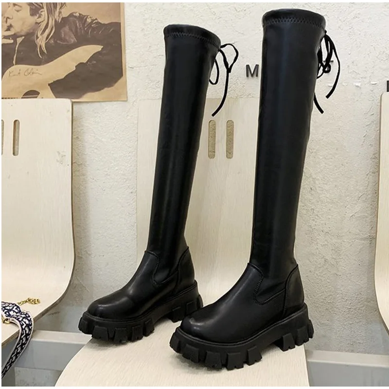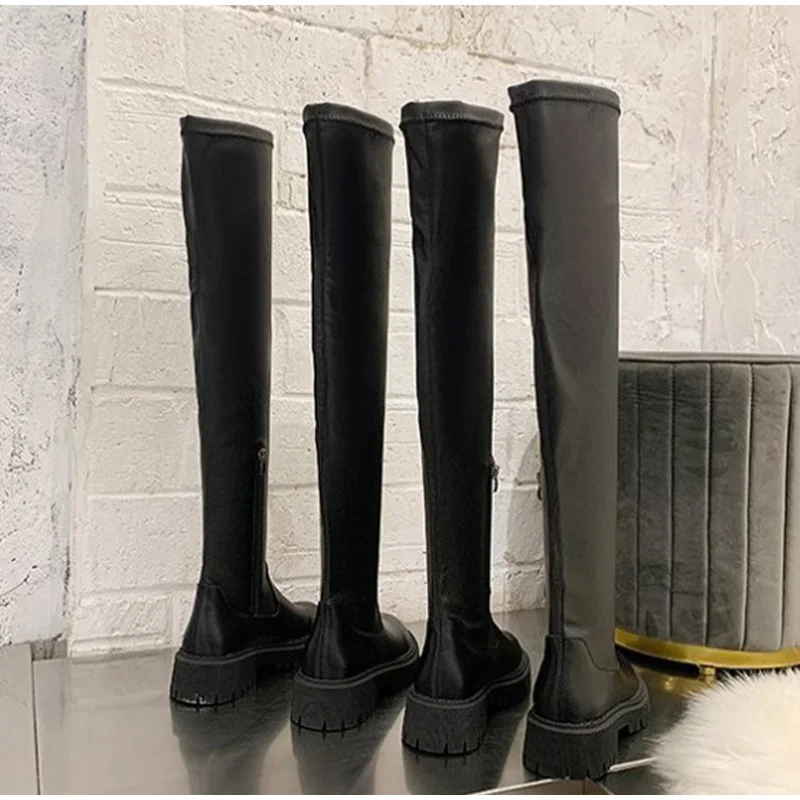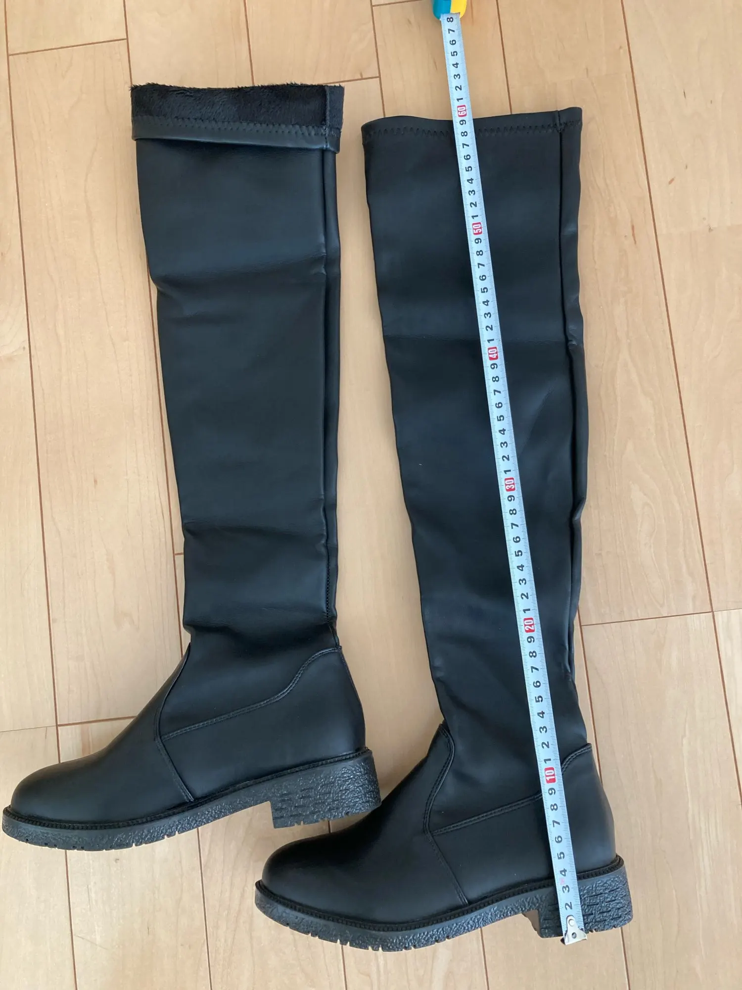 Женские сапоги выше колена, короткие плюшевые сапоги, женская обувь из искусственной кожи на среднем каблуке, нескользящая зимняя обувь, женские теплые длинные сапоги, Новинка