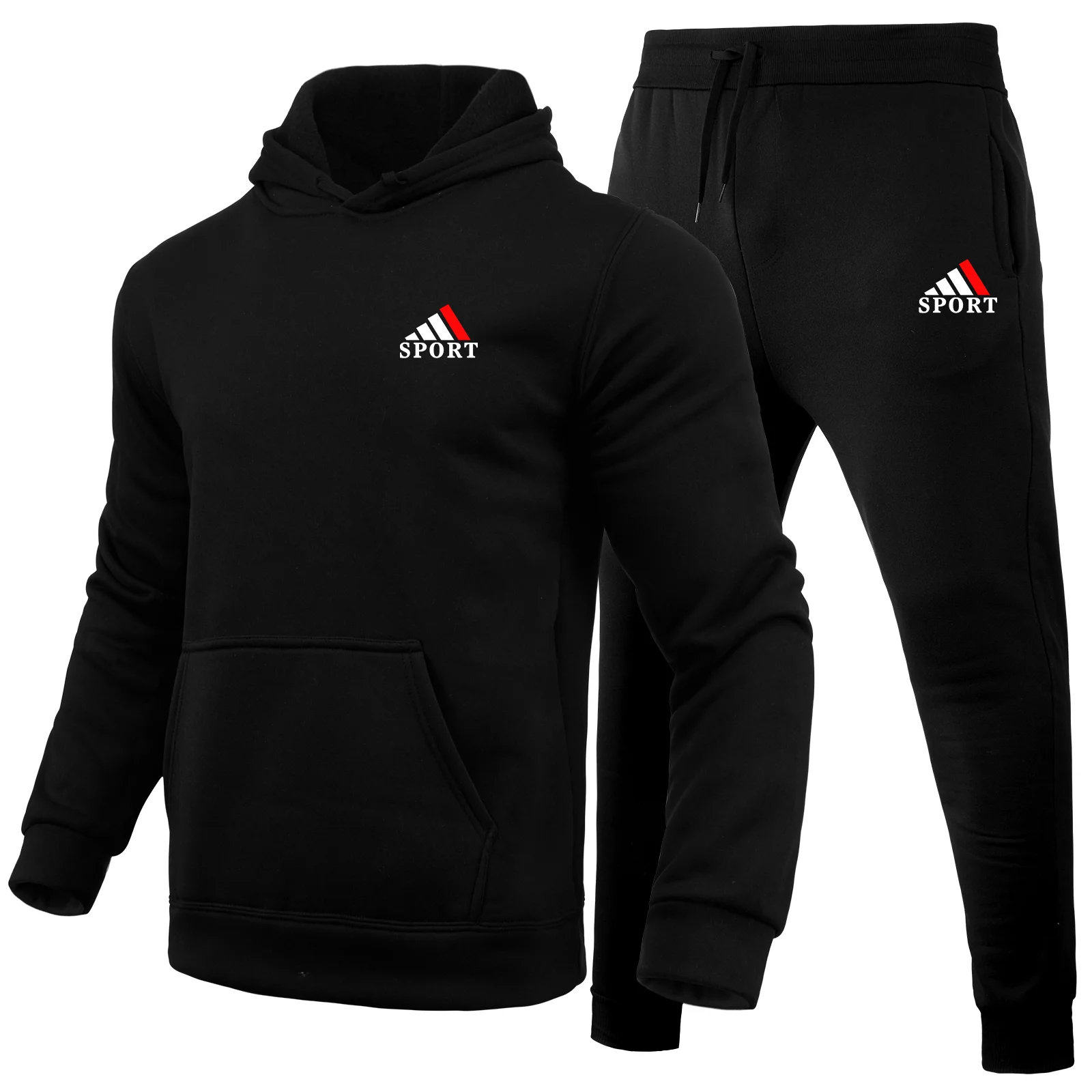 Мужской спортивный костюм, черная однотонная толстовка с капюшоном ...