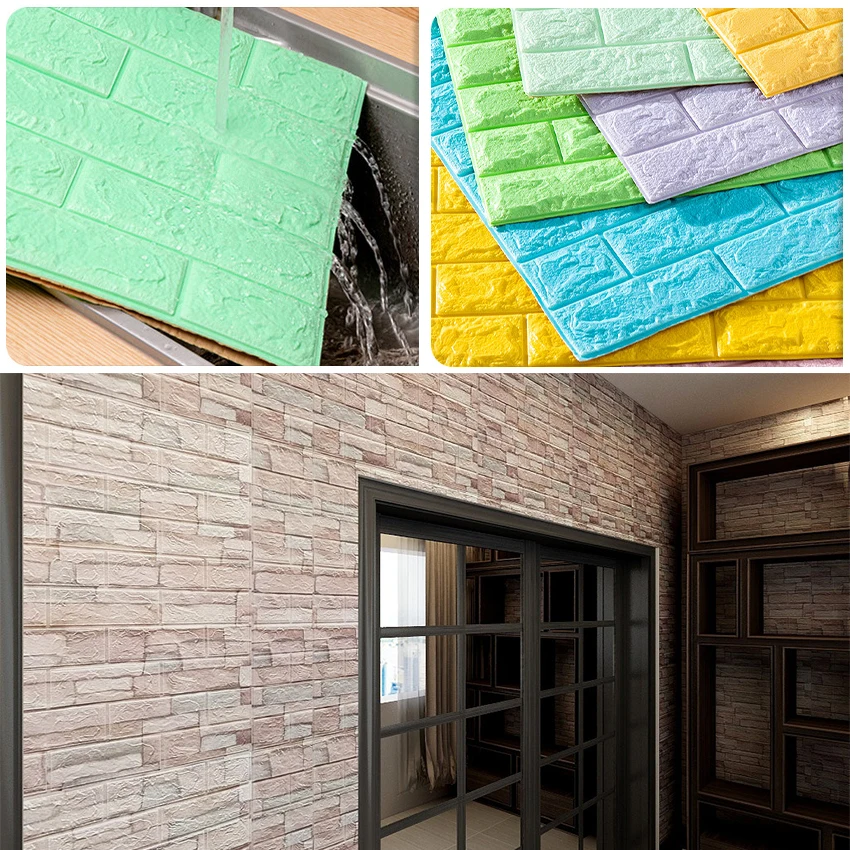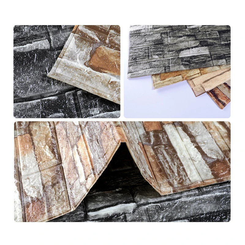 Высококачественная пена XPE выбрана в качестве основного материала, а эффект натурального кирпичного зерна стенной наклейки сделан путем прецизионного формования формы.