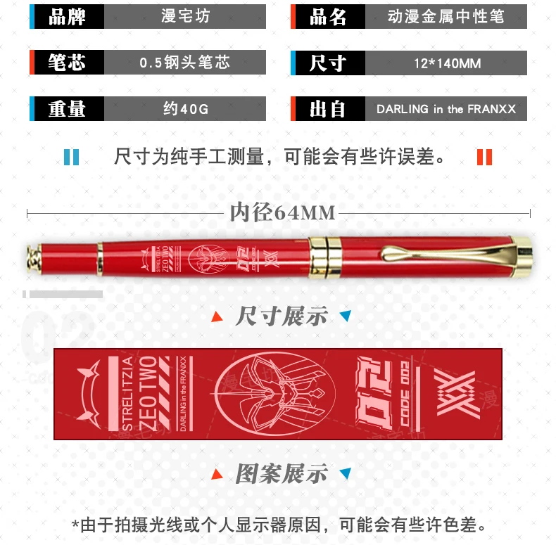Металлическая гелевая ручка с рисунком в стиле аниме Дарлинг в FRANXX 02 Zero Two, шариковая ручка для студентов, подарок на Рождество