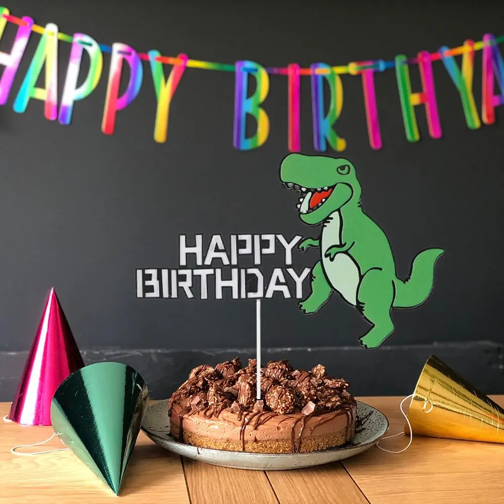 Топпер для кекса на день рождения, акриловый, с изображением диноза...