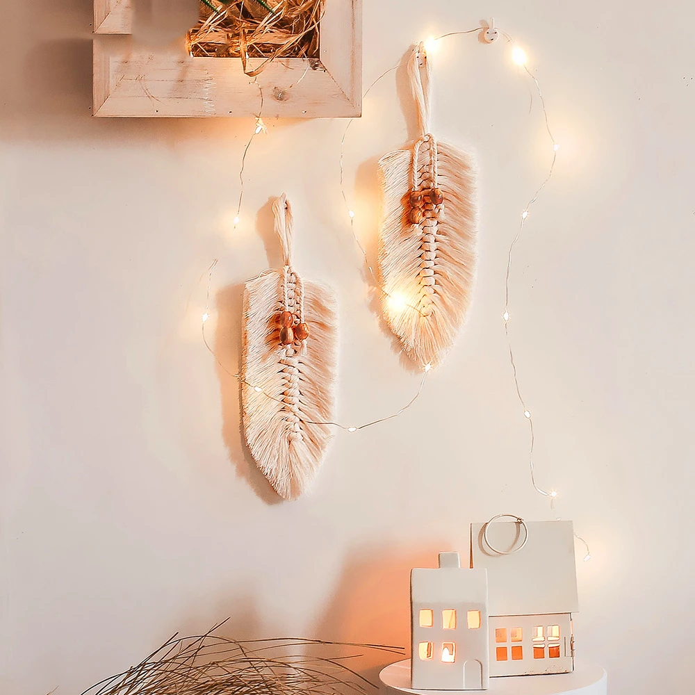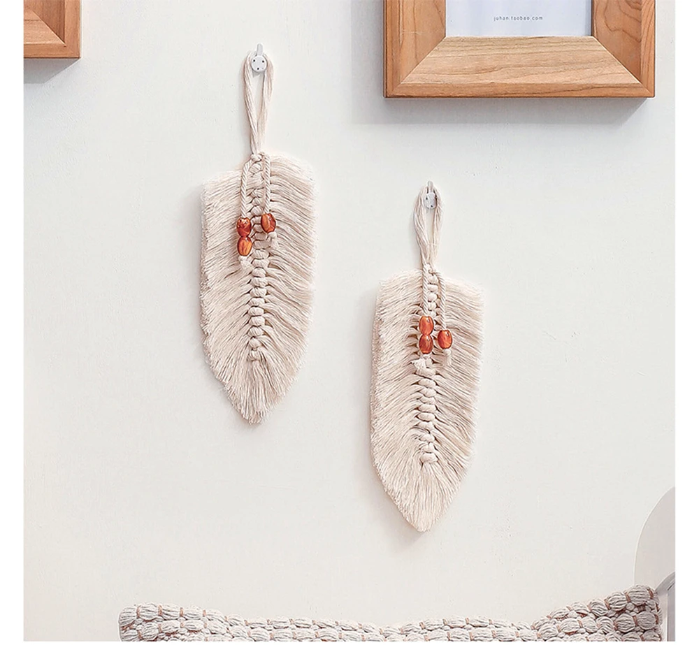 Макраме с перьями, настенный гобелен с бахромой, макраме, Настенный...