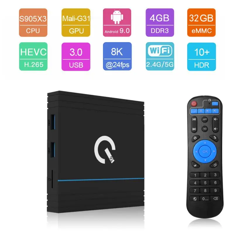 ТВ-приставка Q95 S905 X3, четырехъядерная, 4G + 32G, Android 9,0, 2,4G5G, Wi-Fi, 4K HD, медиаплеер