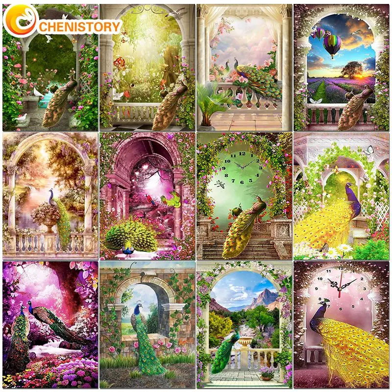 Картина по номерам CHENISTORY, фоторамка с павлином, современные картины с номером, рисунок на холсте, ручная роспись, Декор, искусство
