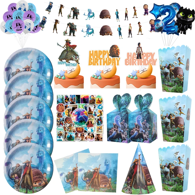 Одноразовая посуда Disney Raya и последний дракон, детская посуда на день рождения, тарелки, праздничные сувениры, набор украшений