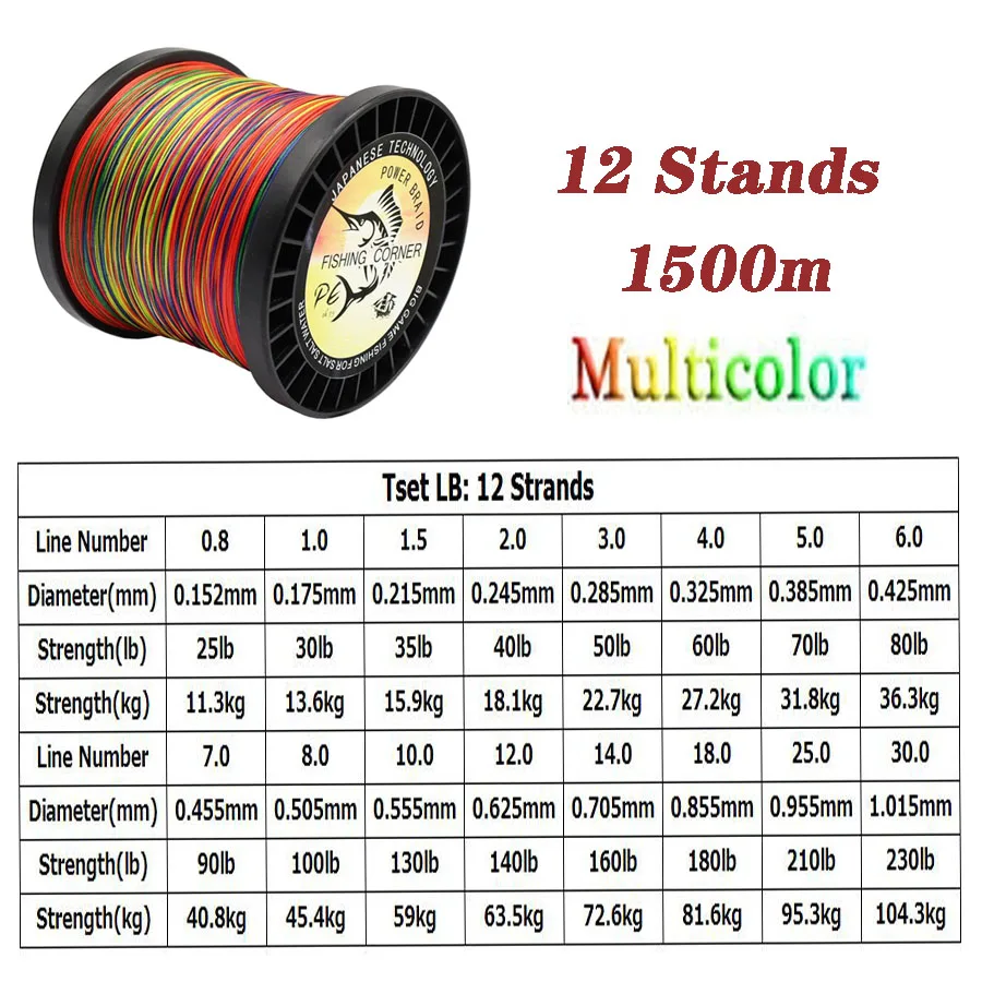 Fc 12 нитей 1500 м плетеная леска многонитевая 25-230LB многоцветная сверхпрочная японская леска для морской рыбалки