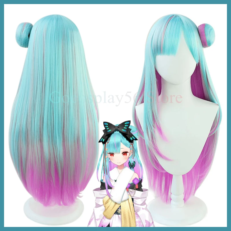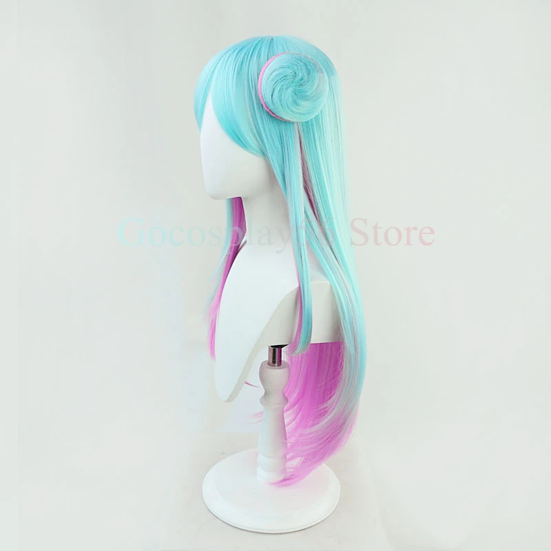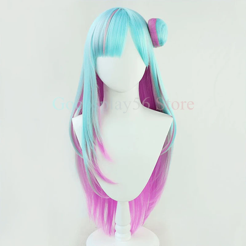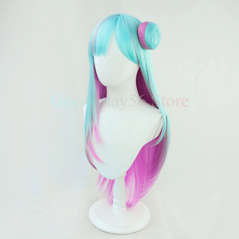 Головы фантазия запуха русхия парик булочка VTuber Косплей Градиент Синий Розовый Длинные прямые волосы Holo без граффити некромант