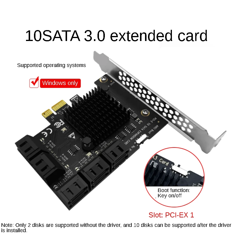 Описание:Совместим с PCI-expersСоответствие спецификации Serial ATA 3,0Тип шины интерфейса PCI Express X4 3,0Поддерживаемые коммуникационные ставки, 6,0 Гбит/сГорячий обмен и теплообменХарактеристики:ТоварНазвание:PCIE 4X на SATA картуИнтерфейс: PCI-E 4X (совместим с 4X, 8X, 16X слотами, сигнал на самом деле 2X сигнал)Цвет печатной платы: черныйСкорость интерфейса: 6 Гбит/с2U Малый шасси: поддержка, с половинной высоты перегородкиОсновной чип управления: ASMedia ASM1166 + JMicron JMB5xxПоддержка системы: WIN10 LINUXПримечание:MSI X470 и X570 не совместимы с этой картой