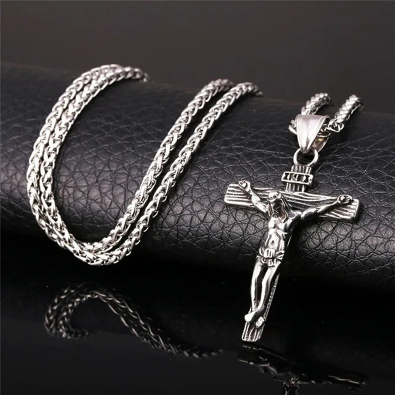 цепочка мужская панк одежда подарок парню крест на шею Мужские украшения, ожерелье с крестом, мерцание, украшение на Хэллоуин, панк, кубинская цепочка, подарок Иисусу Христа, пасхальные мужские украшения