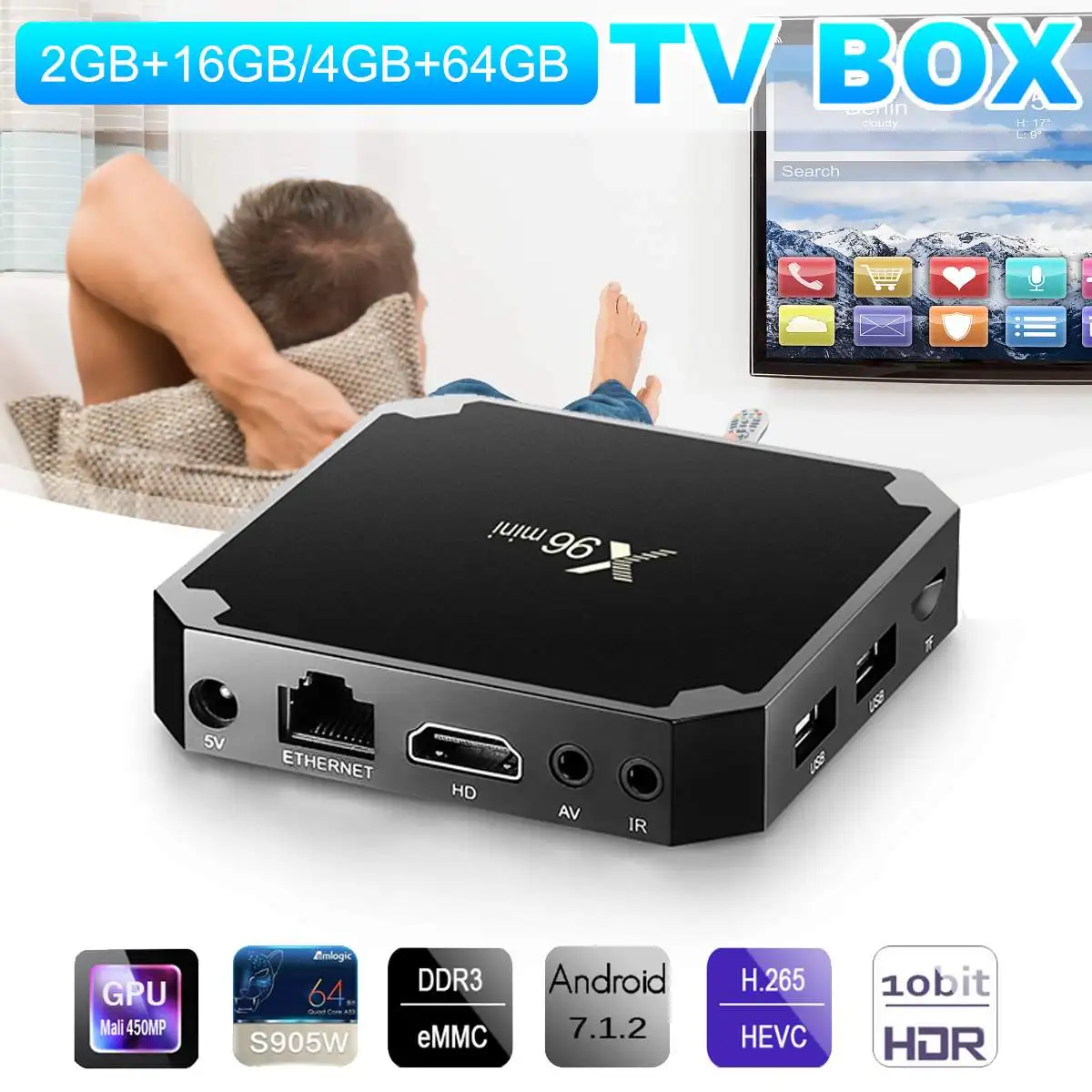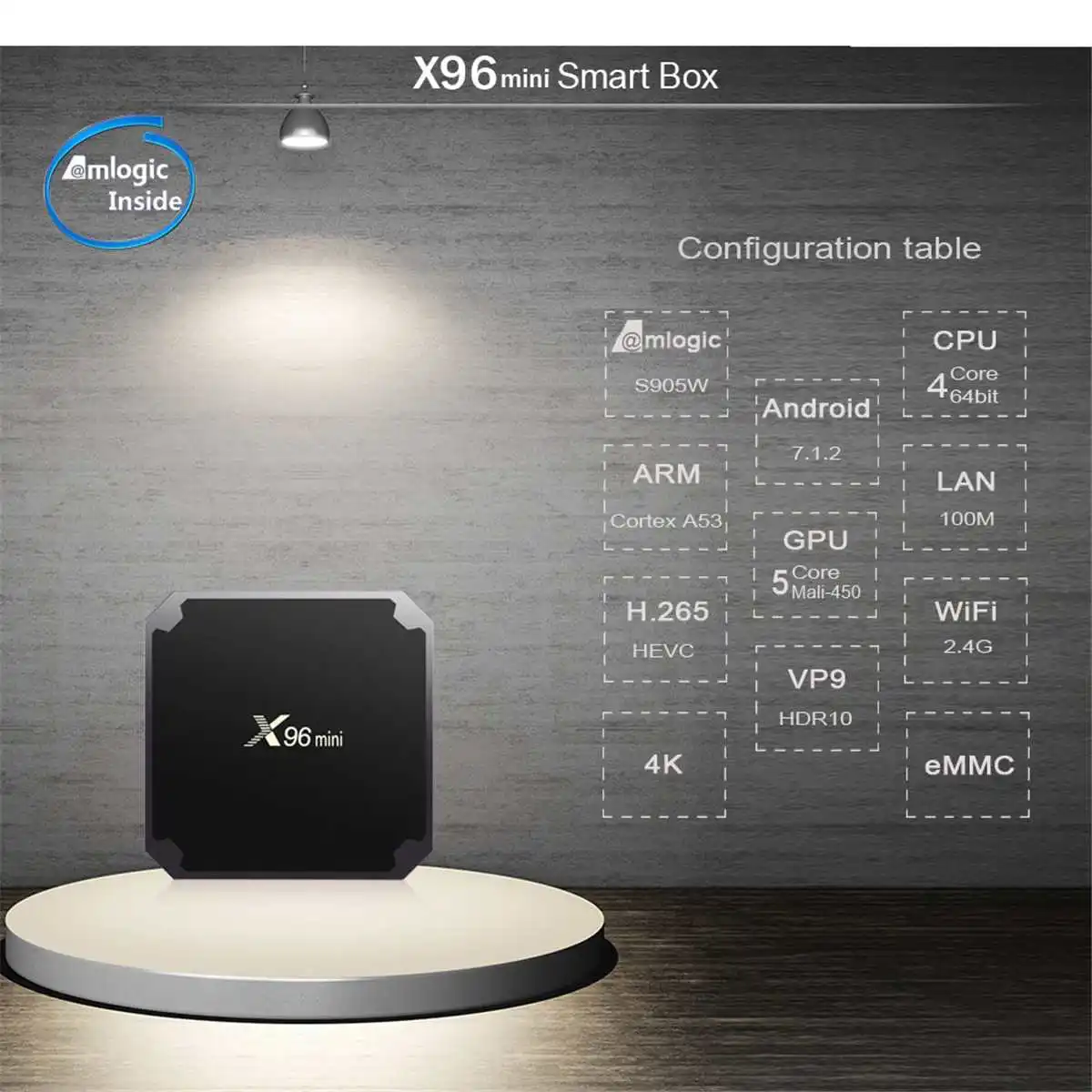ТВ-приставка X96 Mini на Android 7,0, 4K, Wi-Fi, 2,45,8 ГГц, Btooth 2,1, 4 + 64 ГБ