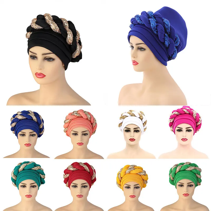 Feature 29latest shinning sequins turban women