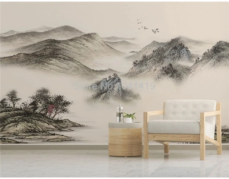 Пользовательские фото обои в китайском стиле художественные абстрактные чернила пейзаж росписи гостиная исследование домашний декор Papel де Parede 3D сала