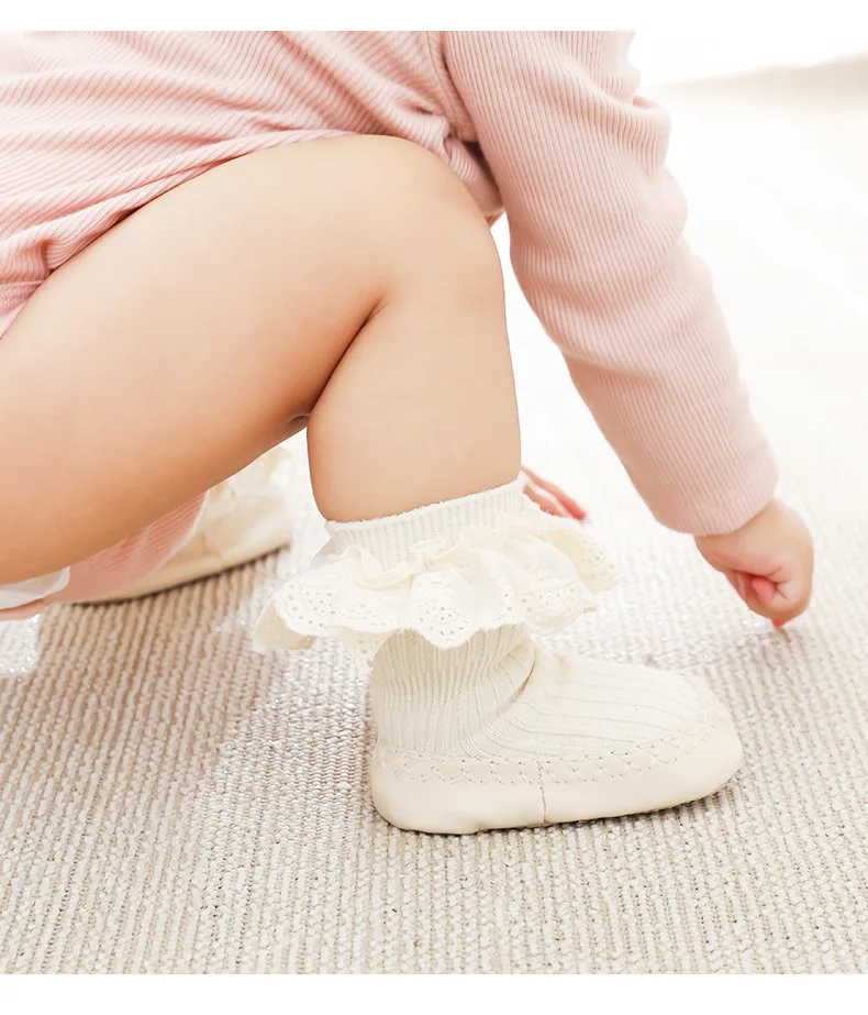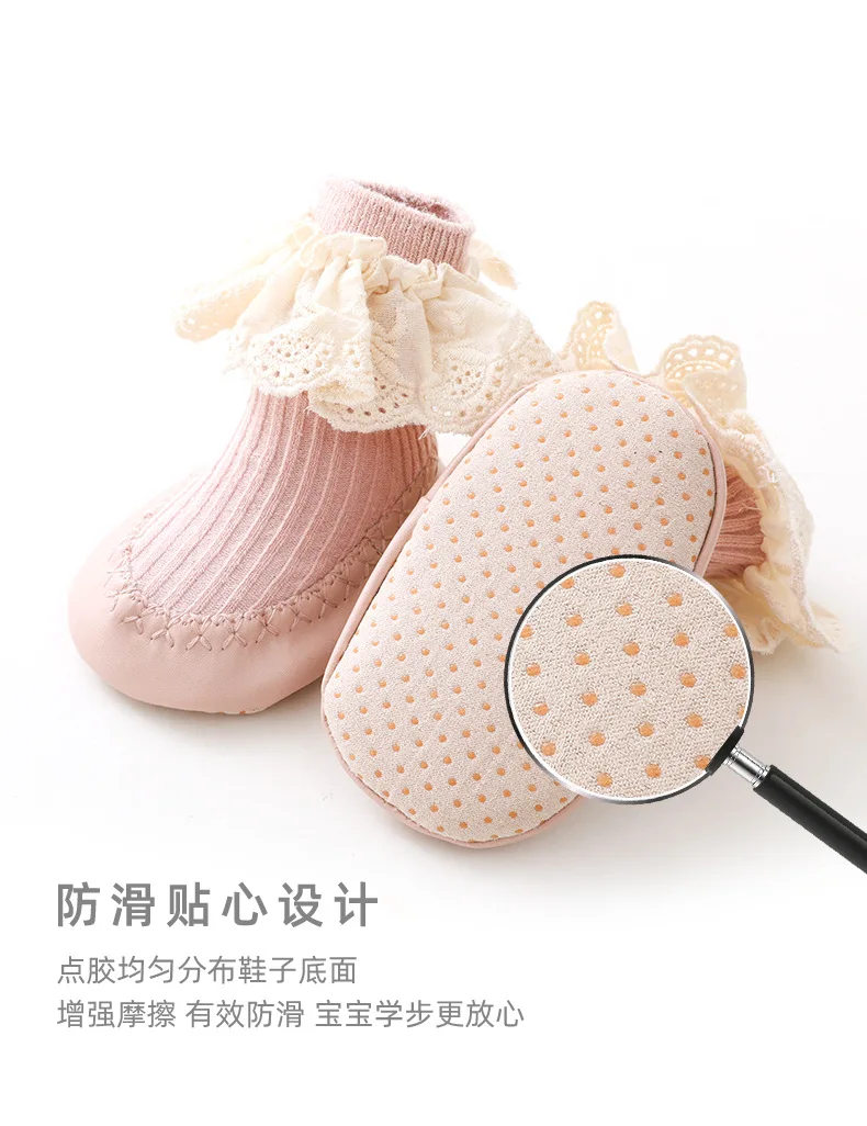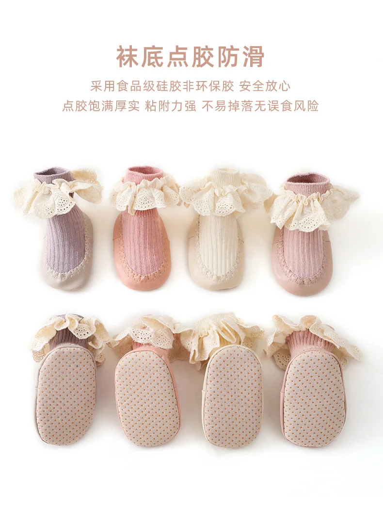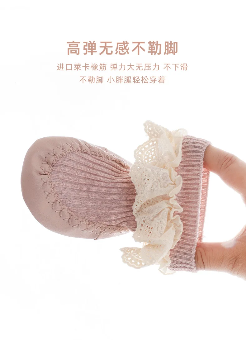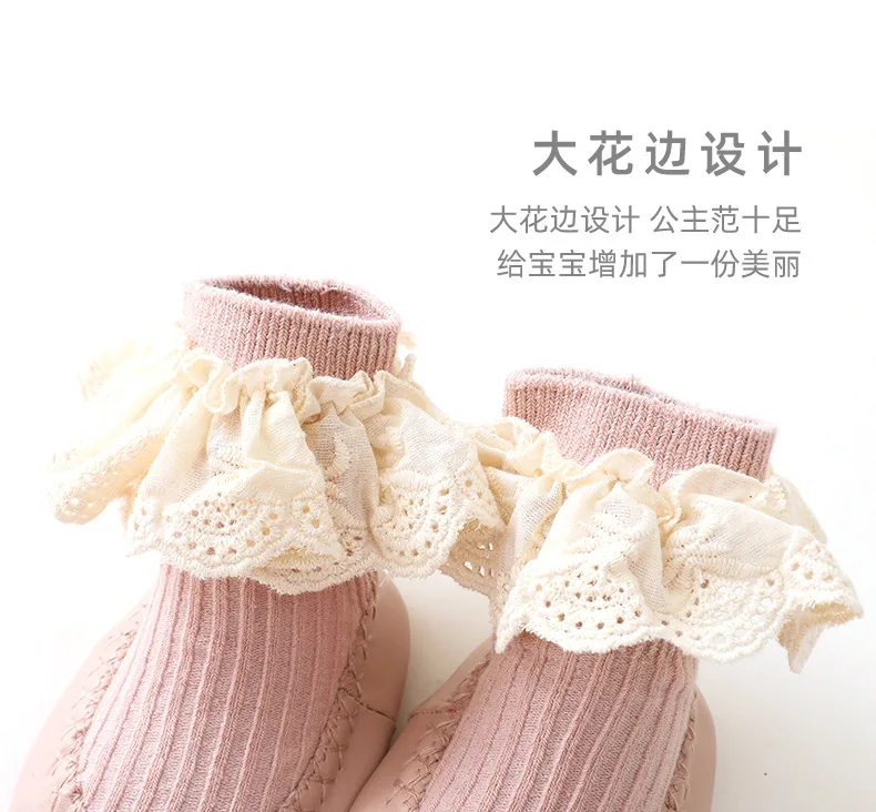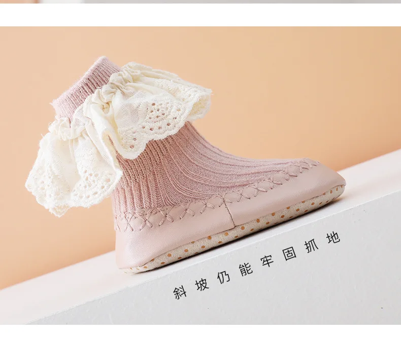 Зимние носки для маленьких девочек, дешевые носки с резиновой подошвой для малышей, кружевные носки для мальчиков, Нескользящие Детские Высокие Носки