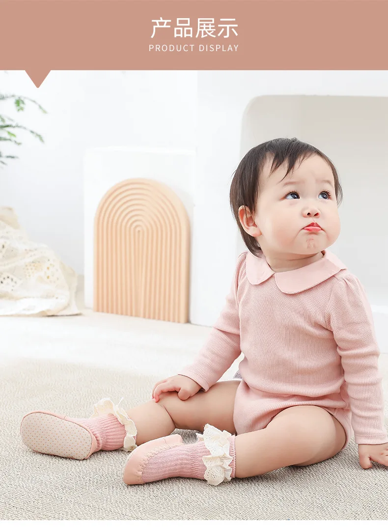 Зимние носки для маленьких девочек, недорогие носки с резиновой подошвой для малышей, кружевные носки для мальчиков, Нескользящие Детские Высокие Носки