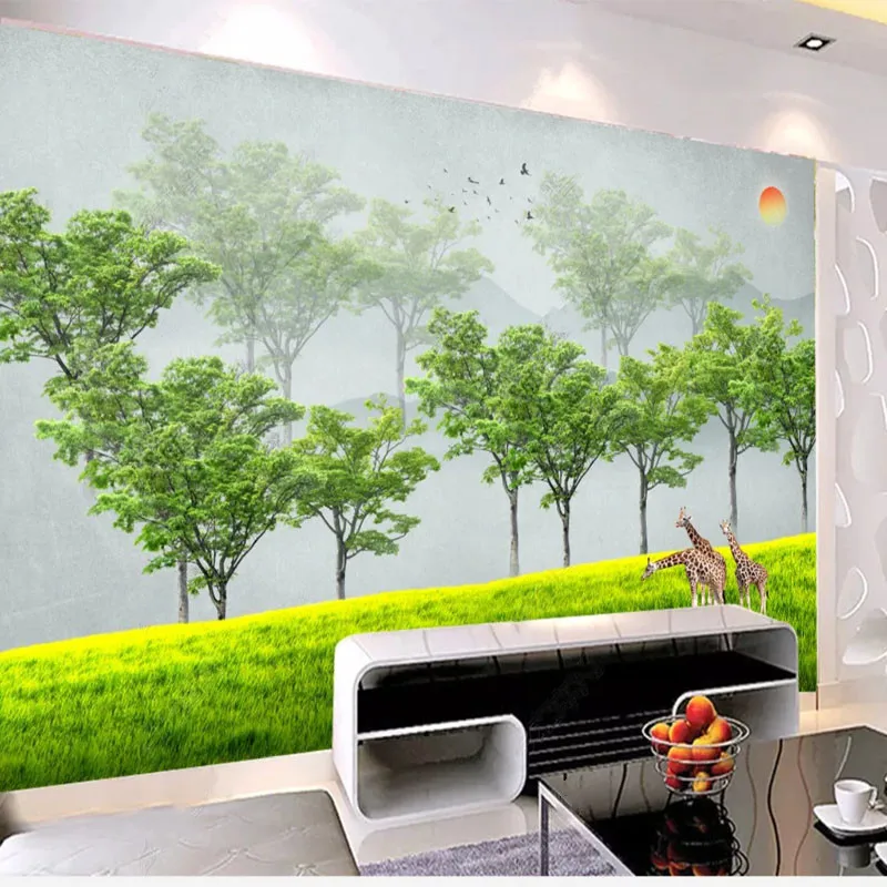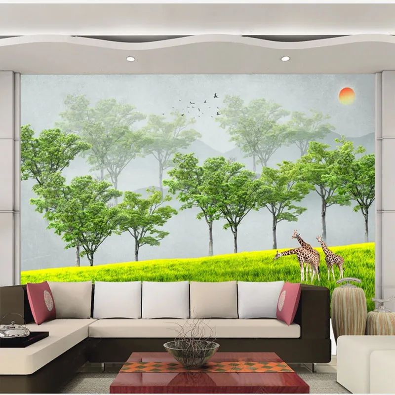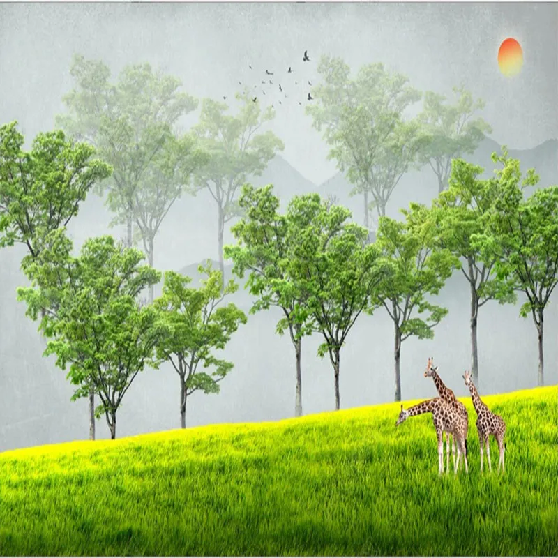 Настенные обои на заказ, настенные водонепроницаемые 3d-наклейки с изображением пейзажа, современного минималистского леса, жирафа, фона для телевизора