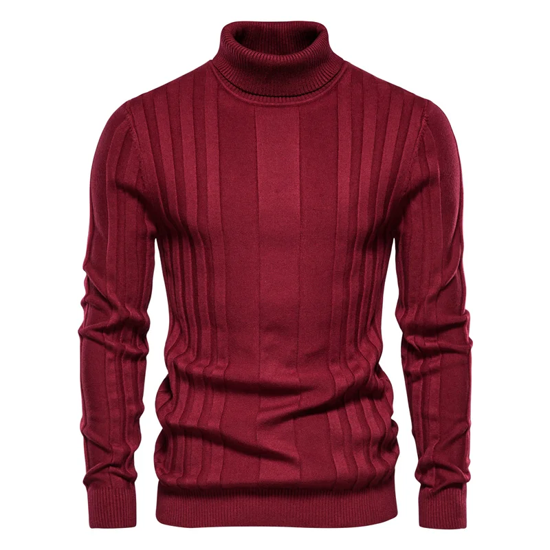 Мужской облегающий пуловер AIOPESON, повседневный базовый однотонный теплый свитер в полоску с высоким воротом, новинка зимы