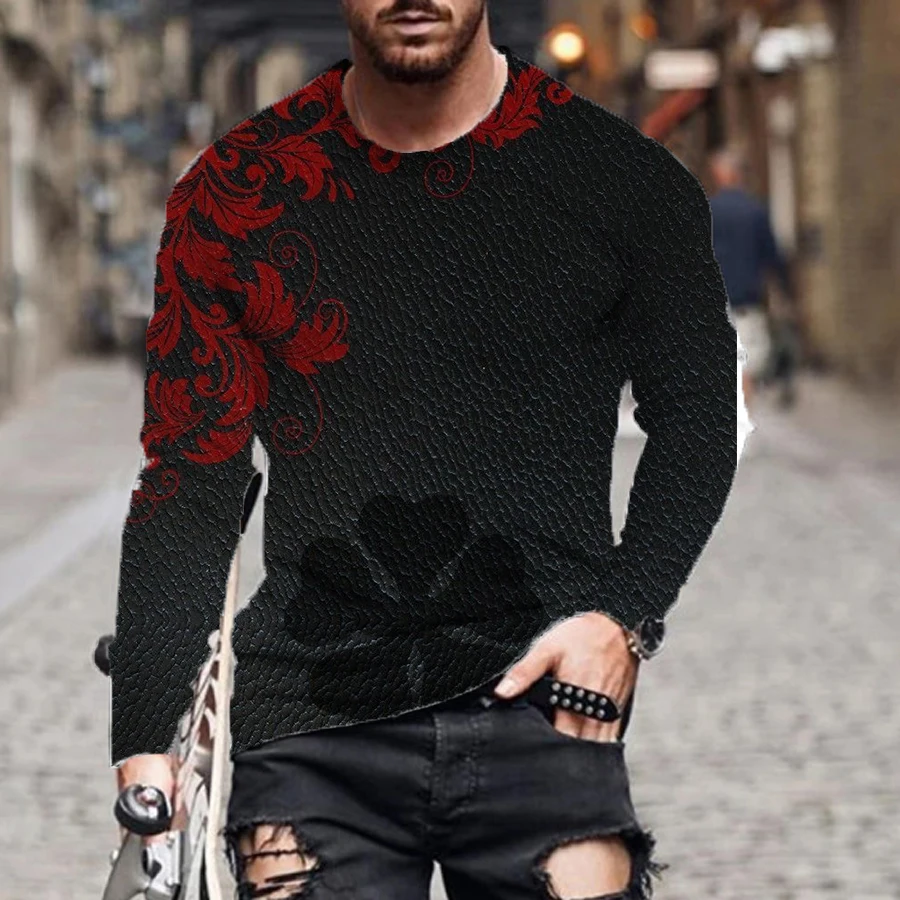Весна-Осень 2021, модная Европейская и американская рубашка с длинными рукавами, мужская повседневная футболка с 3D-принтом цветков сливы и круглым вырезом