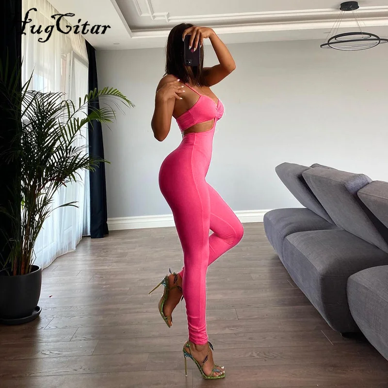 Hugcitar 2021 летний Осенний комбинезон без рукавов с открытой спиной, с вырезами, без застежек, со складками, сексуальный комбинезон для женщин, модные вечерние наряды