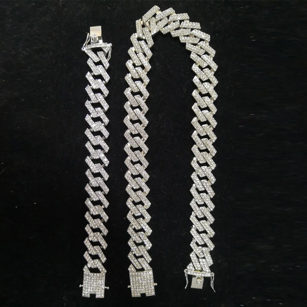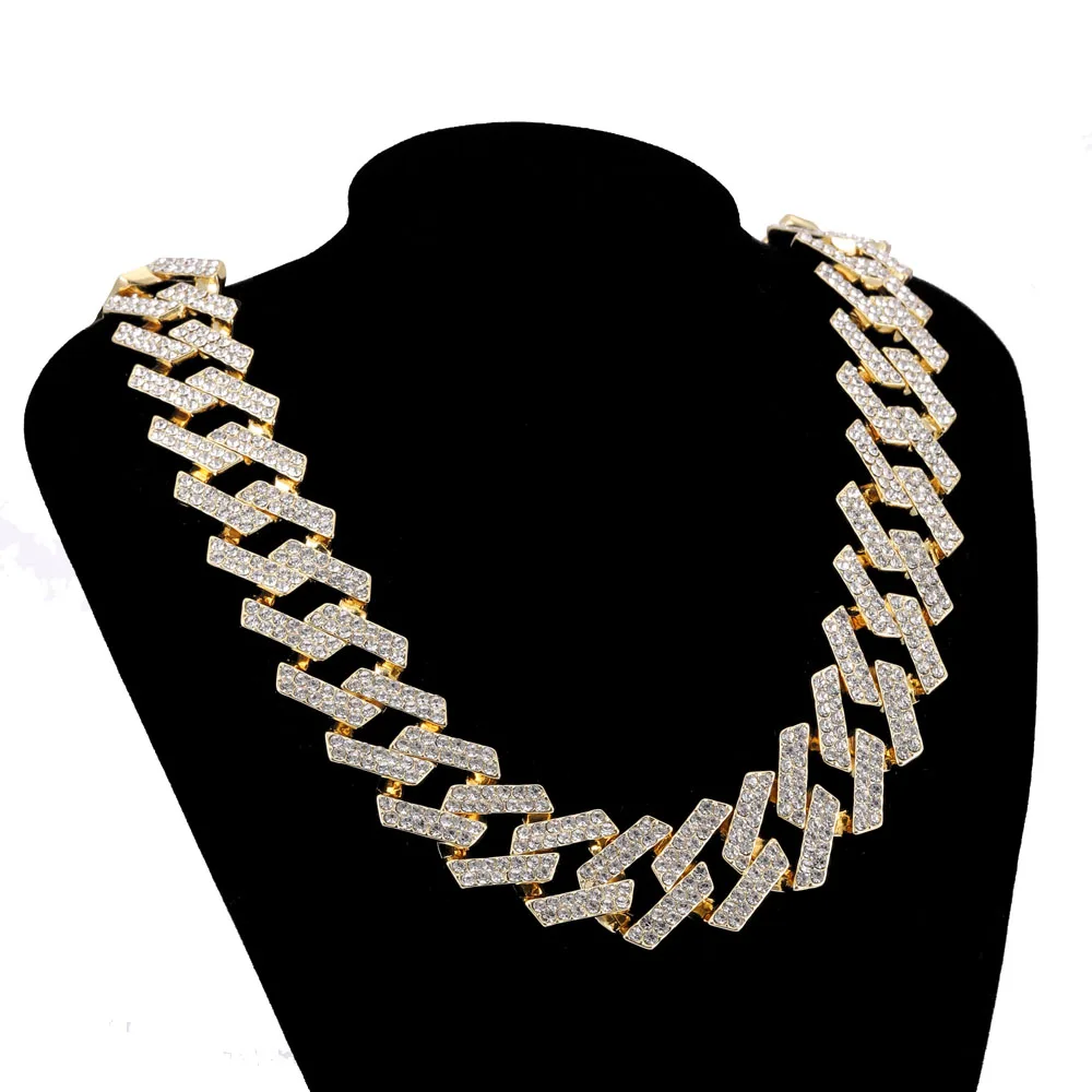 Мужское ожерелье 20 мм из кубинской цепи, сверкающее колье в стиле хип-хоп, ювелирное изделие, чокер золотого и серебряного цвета с фианитом, с застежкой Стразы для мужчин