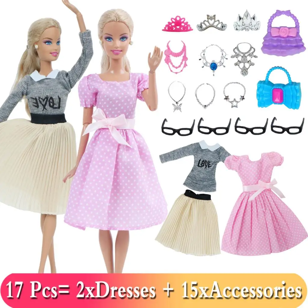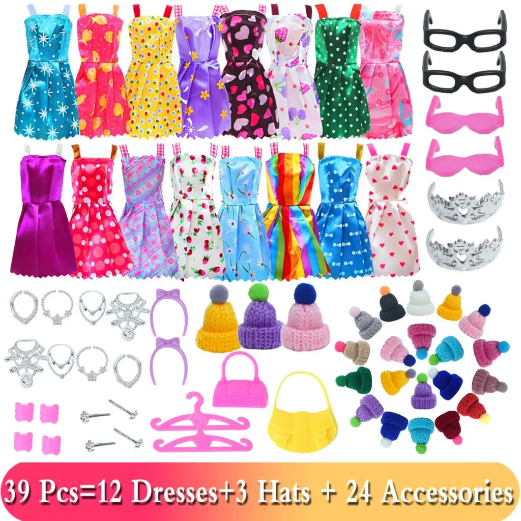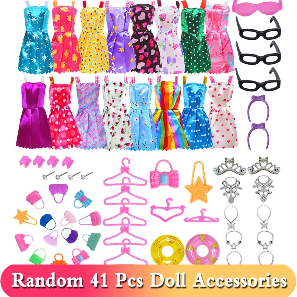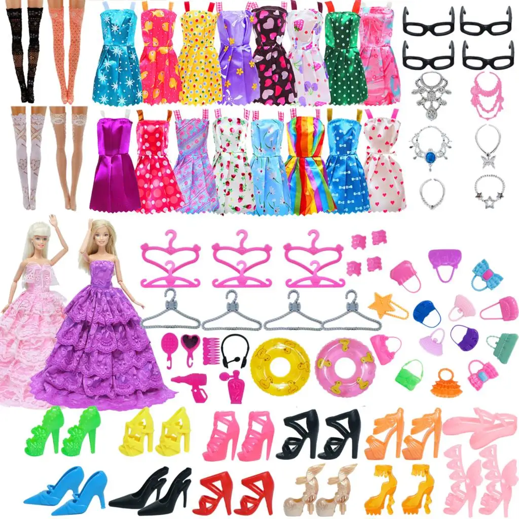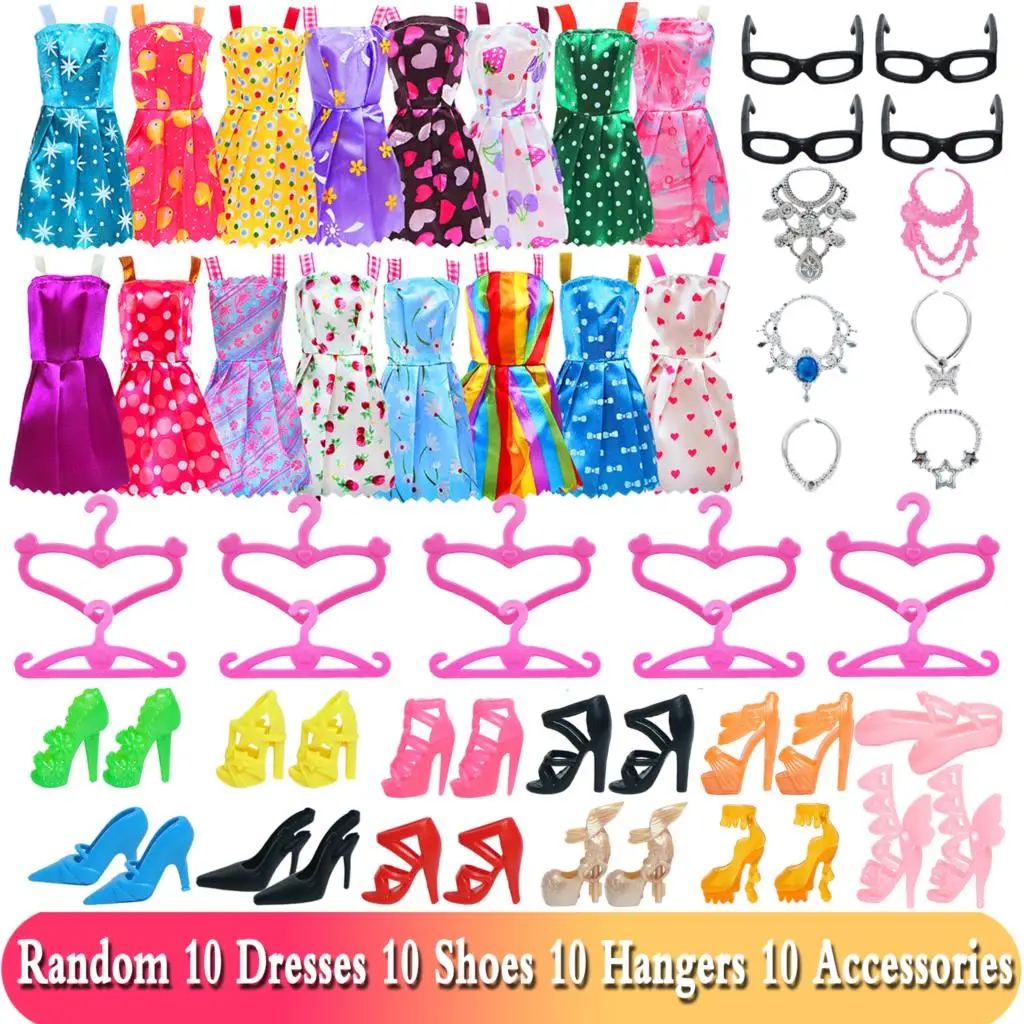 Аксессуары BJDBUS для кукол Барби, Одежда для куклы, смешанные мини-платья, сумки, вешалки, обувь на высоком каблуке, очки, детская игрушка